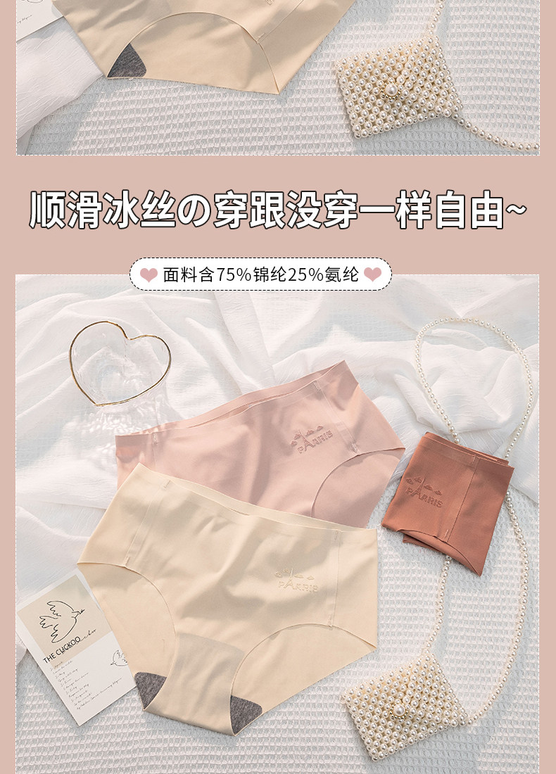 無痕內褲女士中腰夏季薄款棉質抗菌襠透氣不夾臀大碼女生三角短褲