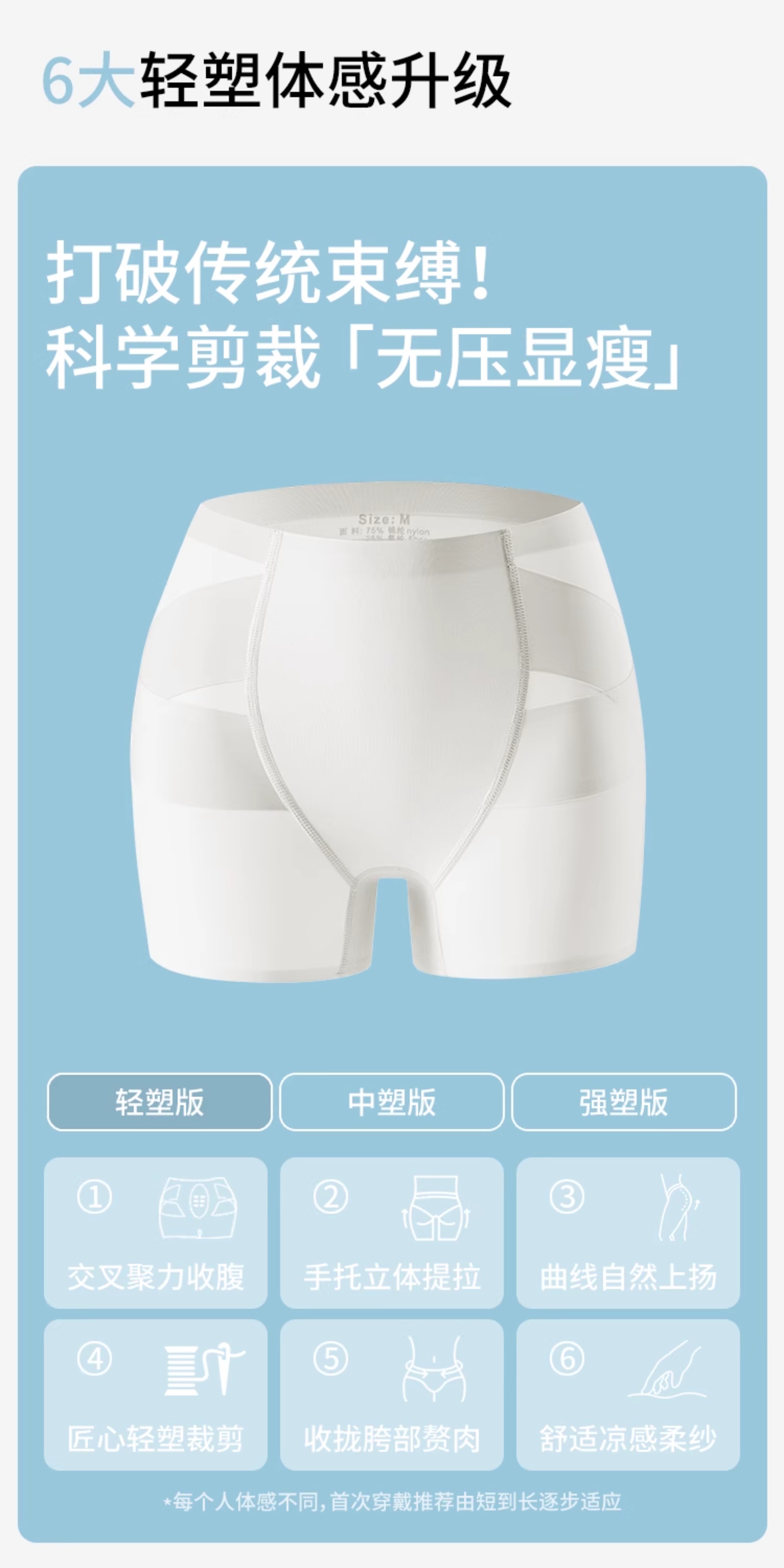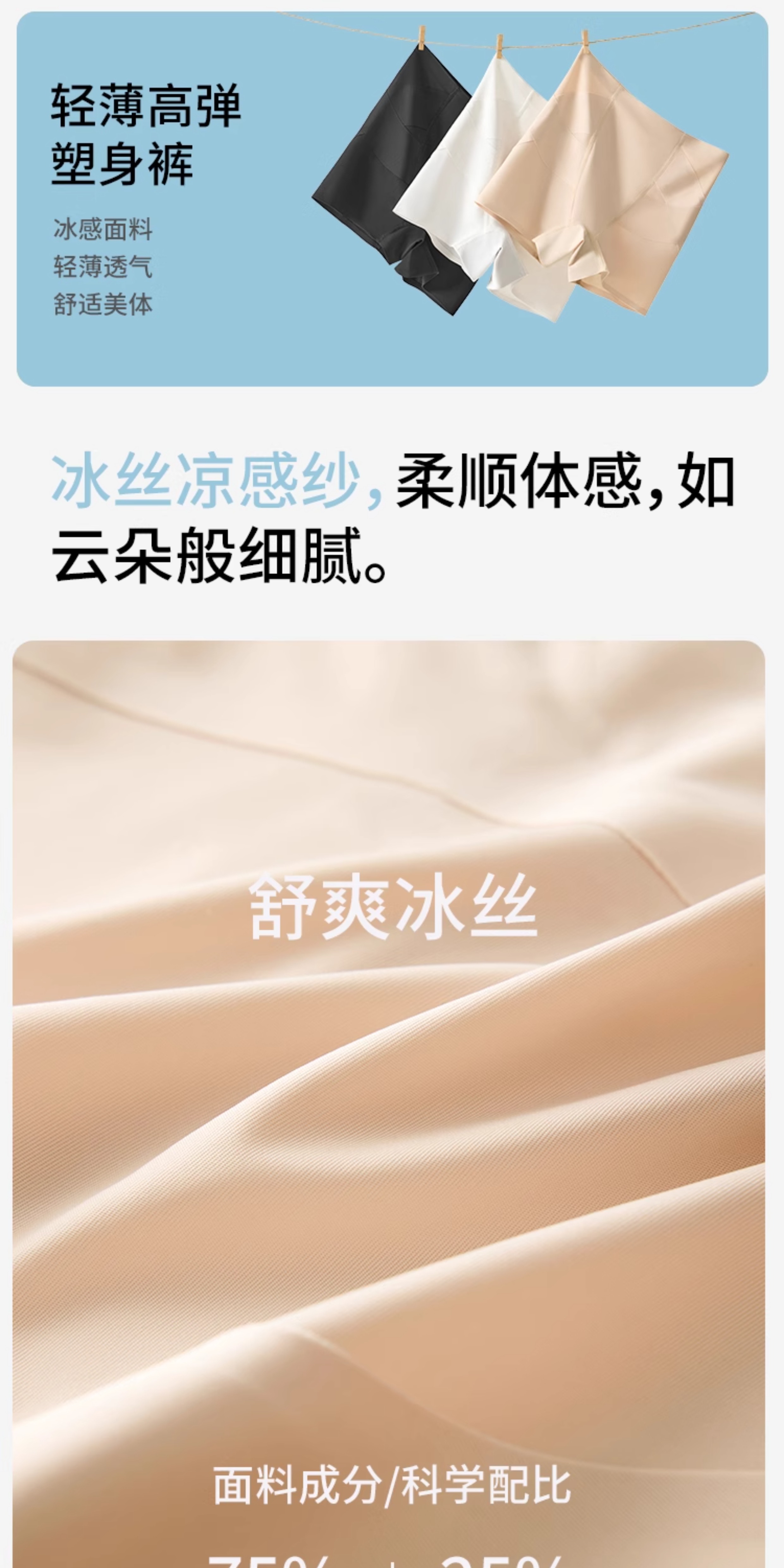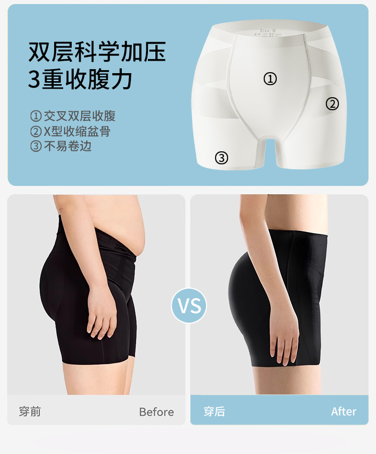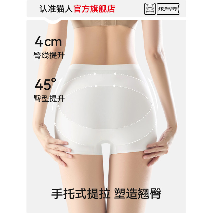 貓人收腹提臀安全褲女夏季薄款無痕隱形防走光翹臀打底內褲二合一