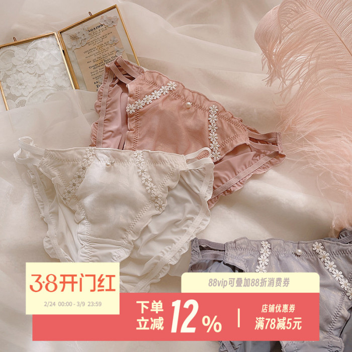 月色芭蕾~牛嬭絲女士內褲可愛雛菊少女高開叉雙細邊絲滑三角褲
