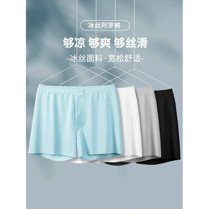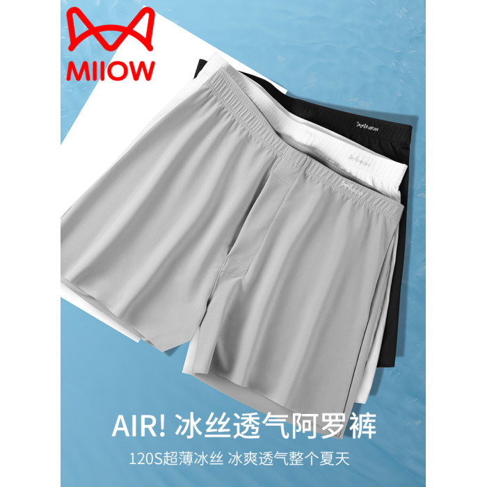 貓人阿羅褲冰絲內褲男士夏季薄款透氣褲頭可外穿褲衩寬松大碼睡褲