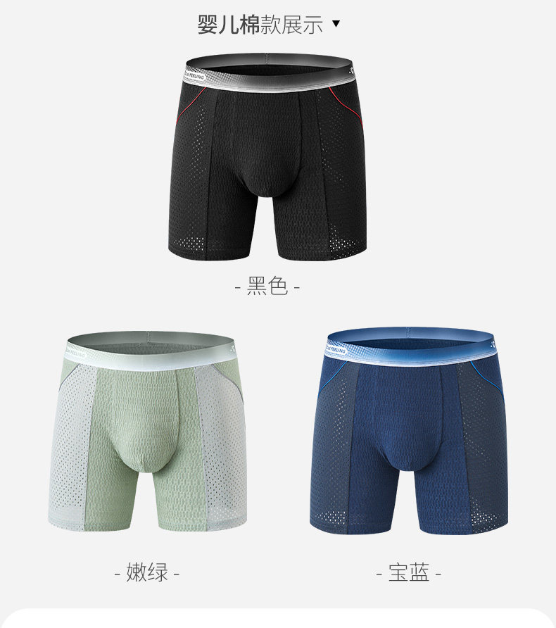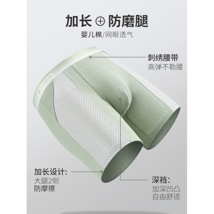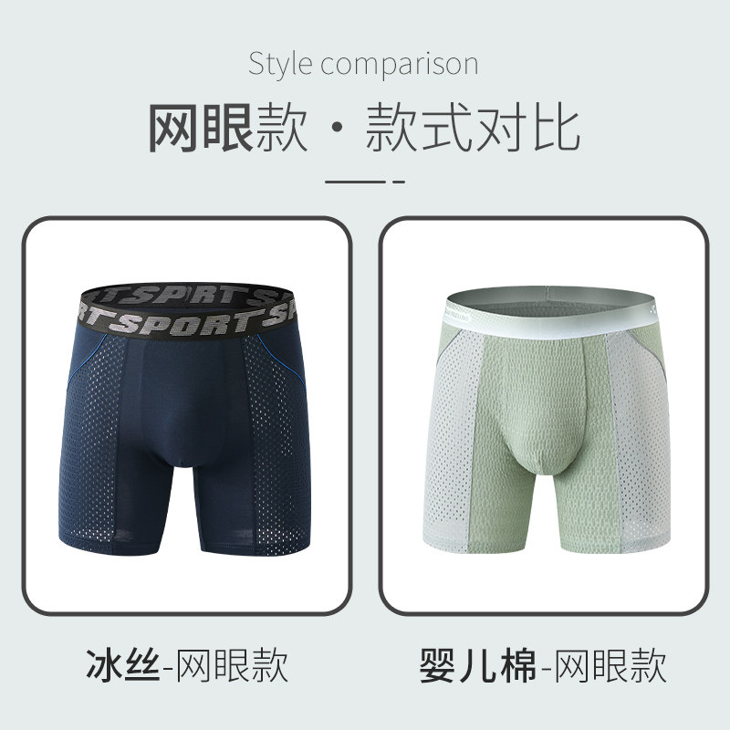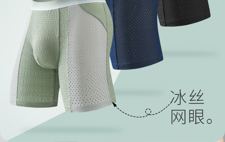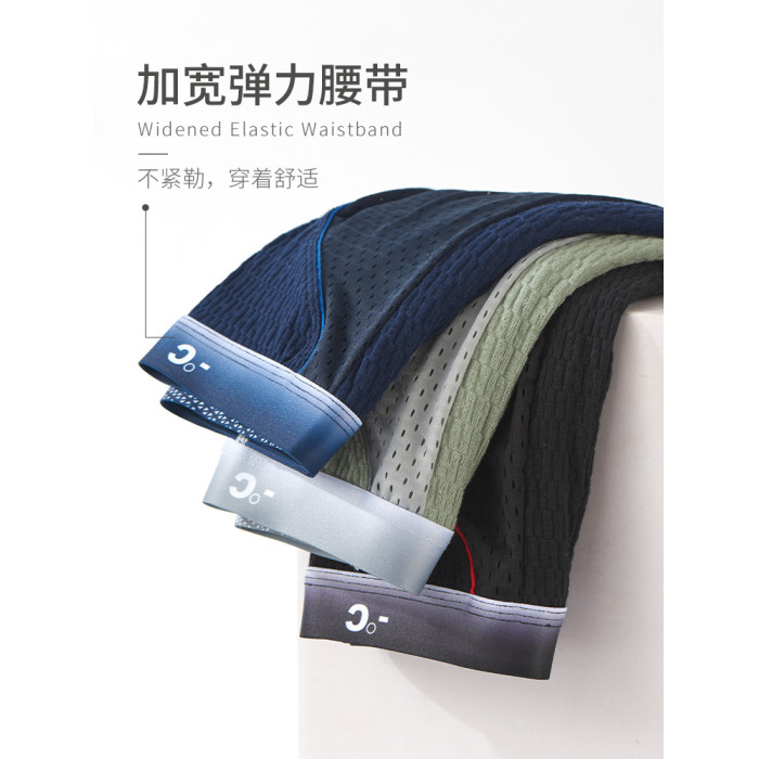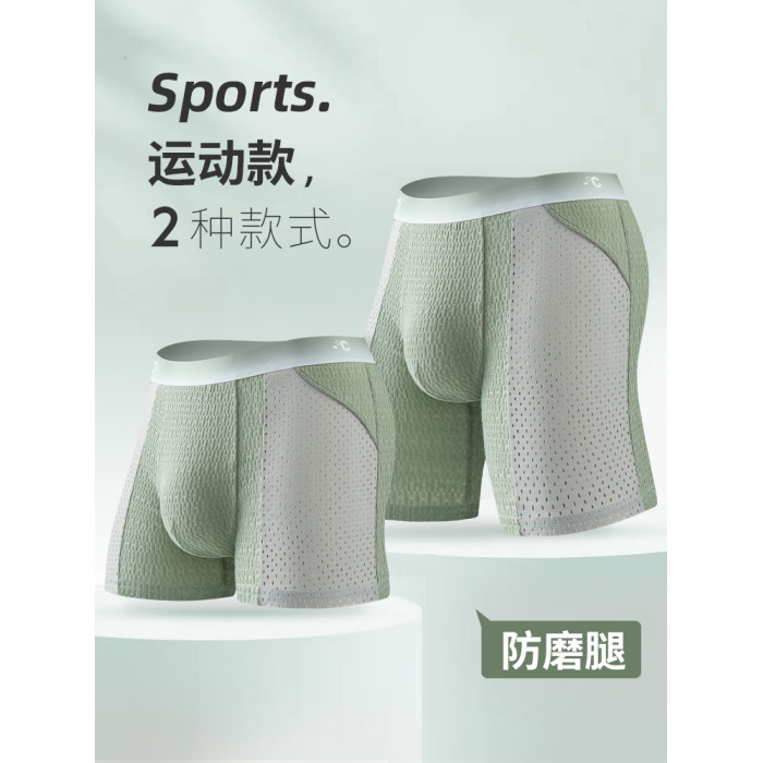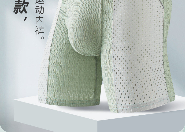 男士運動內褲男防磨襠透氣平角褲中腰網眼冰絲健身跑步短褲四角褲