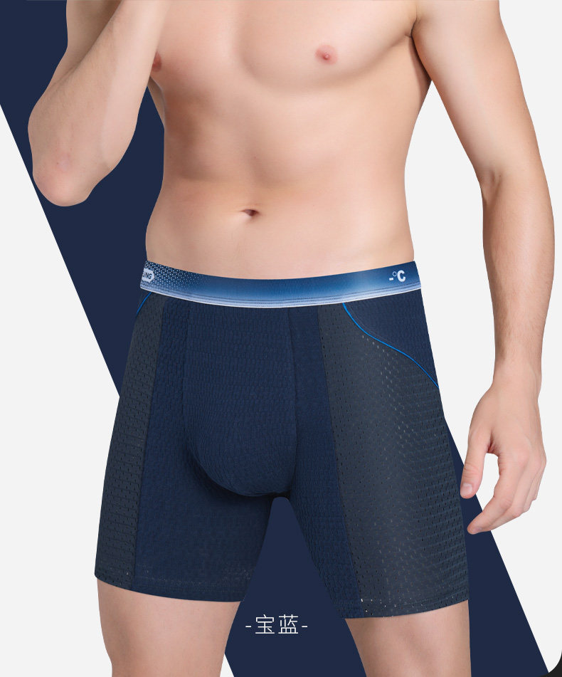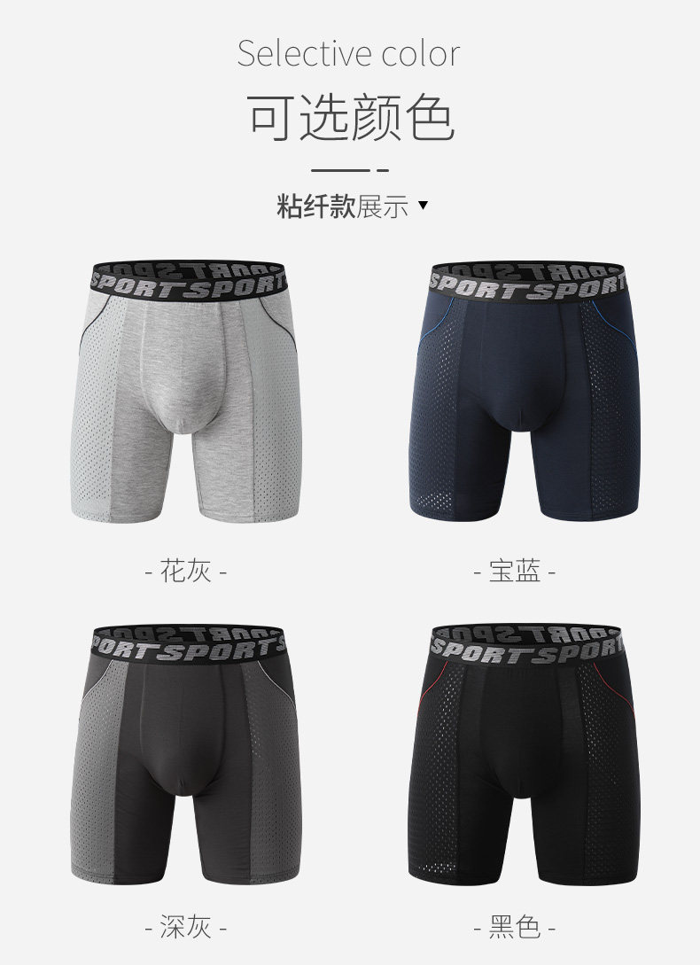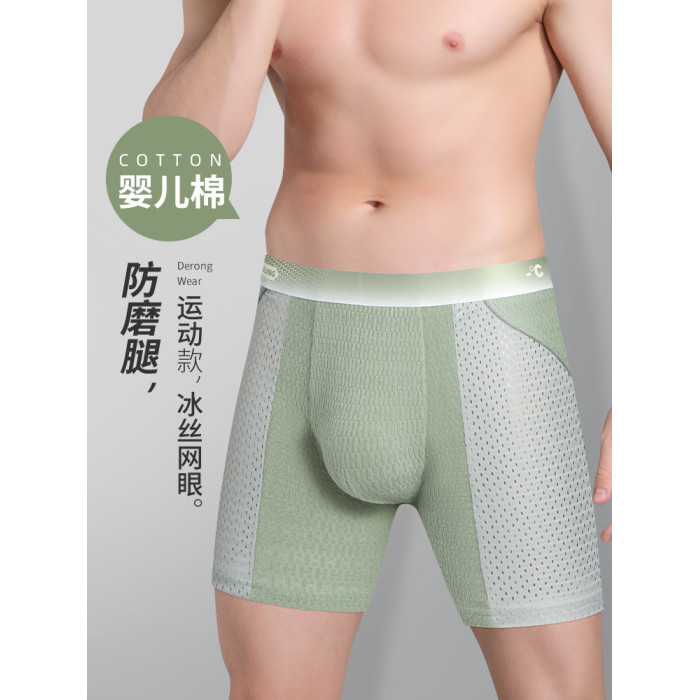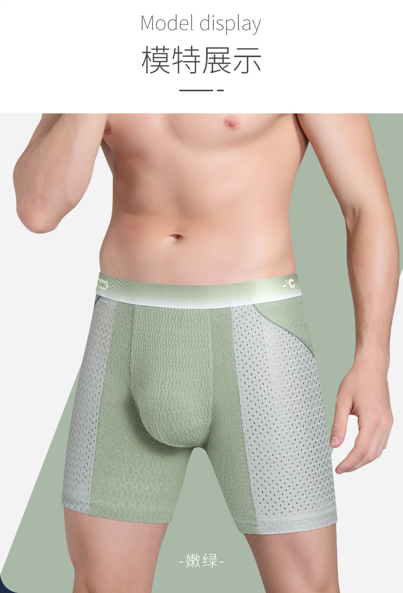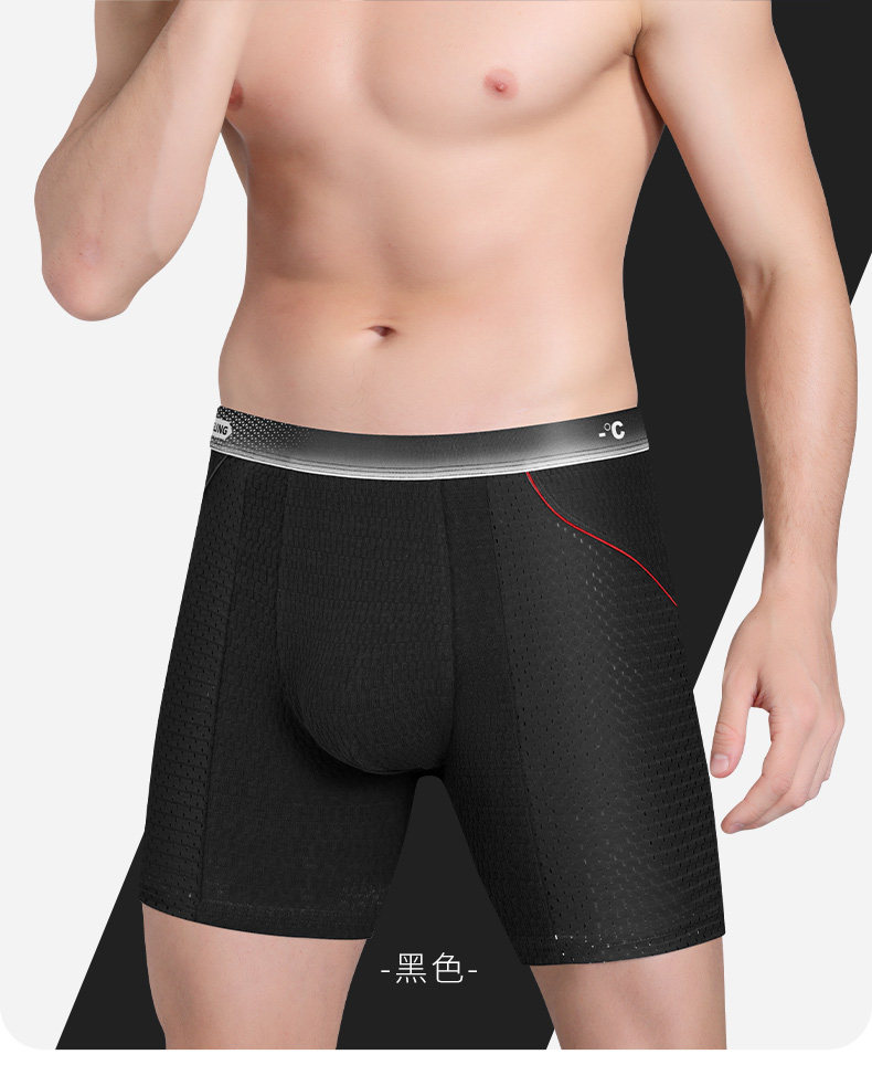 男士運動內褲男防磨襠透氣平角褲中腰網眼冰絲健身跑步短褲四角褲