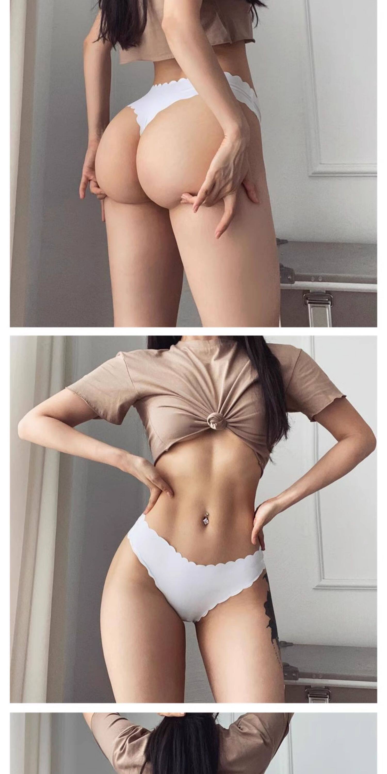 MITAOGIRL性感低腰丁字褲彈性一片式無痕T褲隱形波浪邊運動內褲薄