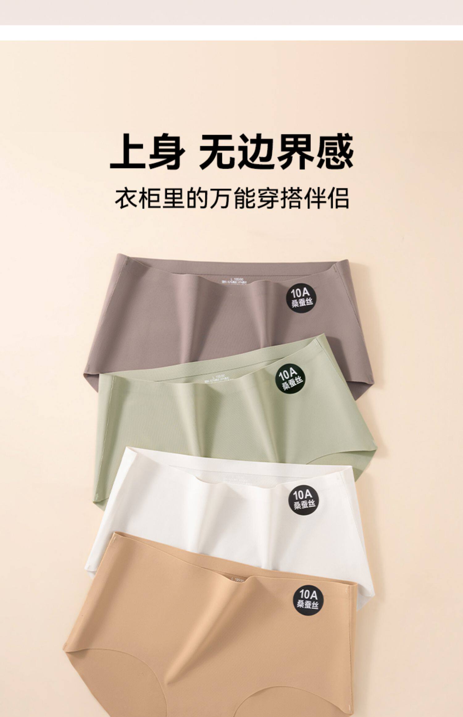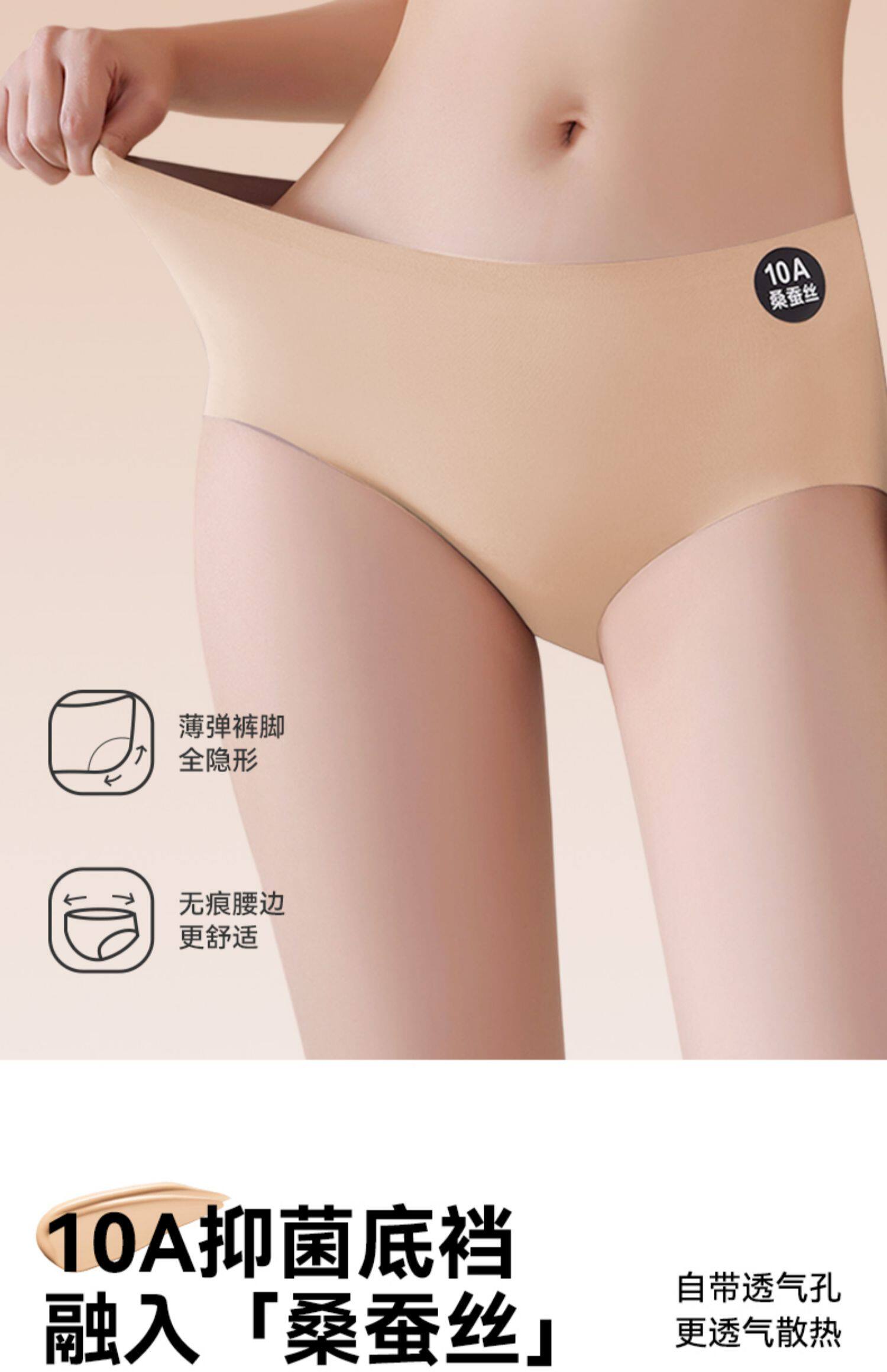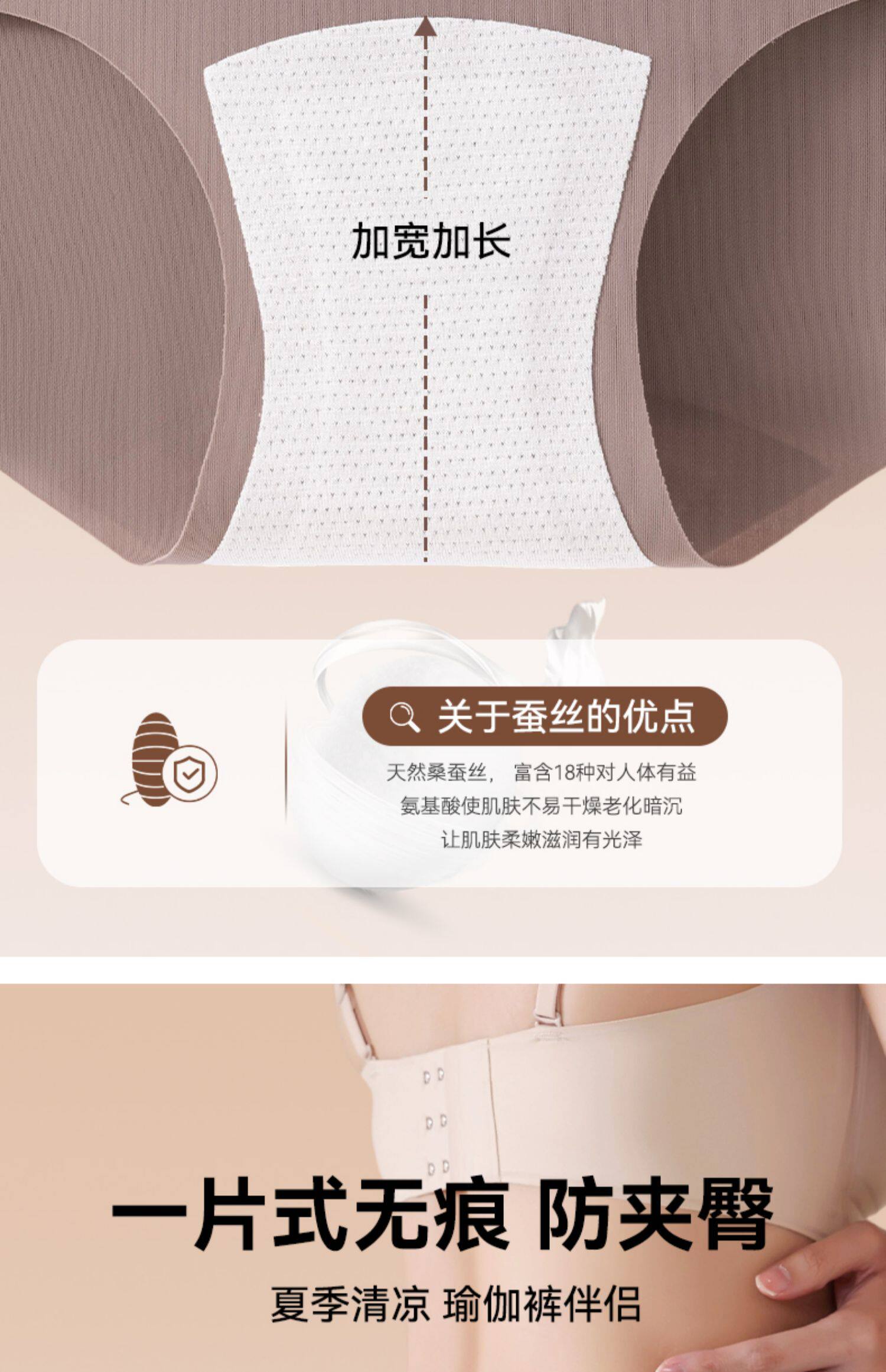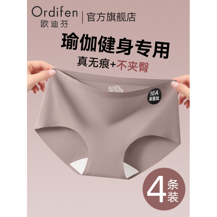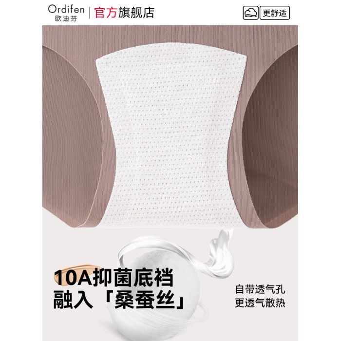 歐迪芬無痕內褲女桑蠶絲10A抗菌2025新款中腰不夾臀透氣冰絲短褲