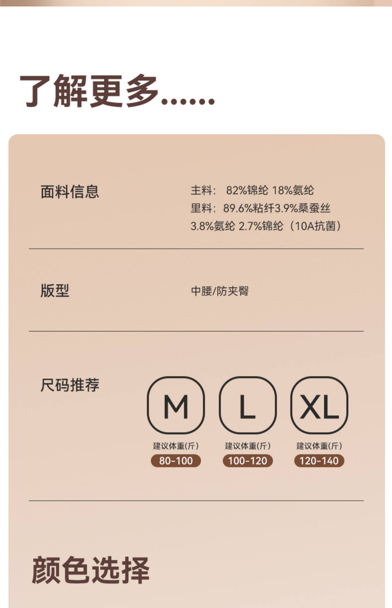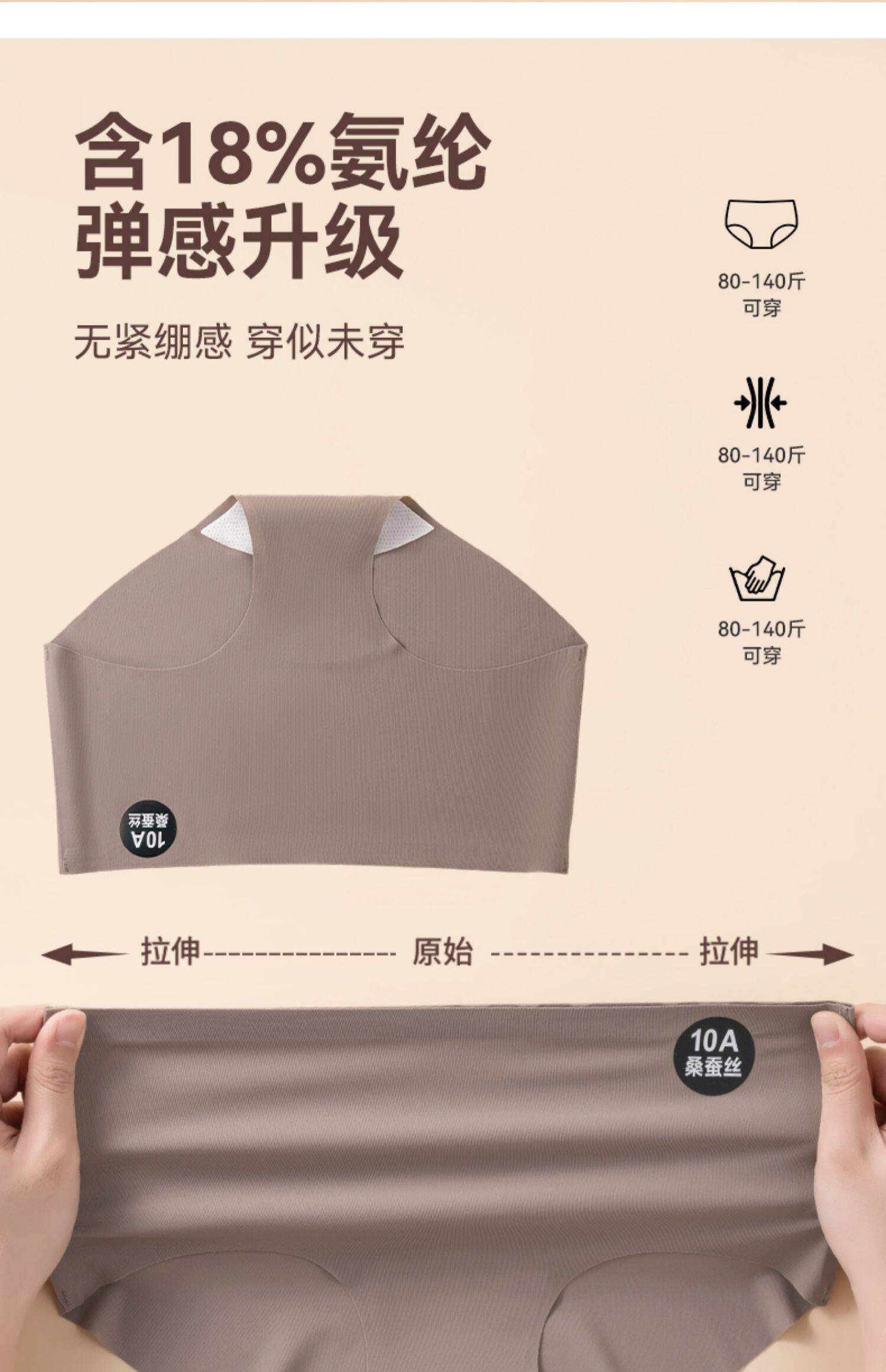 | 襠部材質成分 | 粘膠纖維(粘纖)89.6% 桑蠶絲3.9% 聚氨酯彈性纖維(氨綸)3.8% 聚醯胺纖維(錦綸)2.7% |
