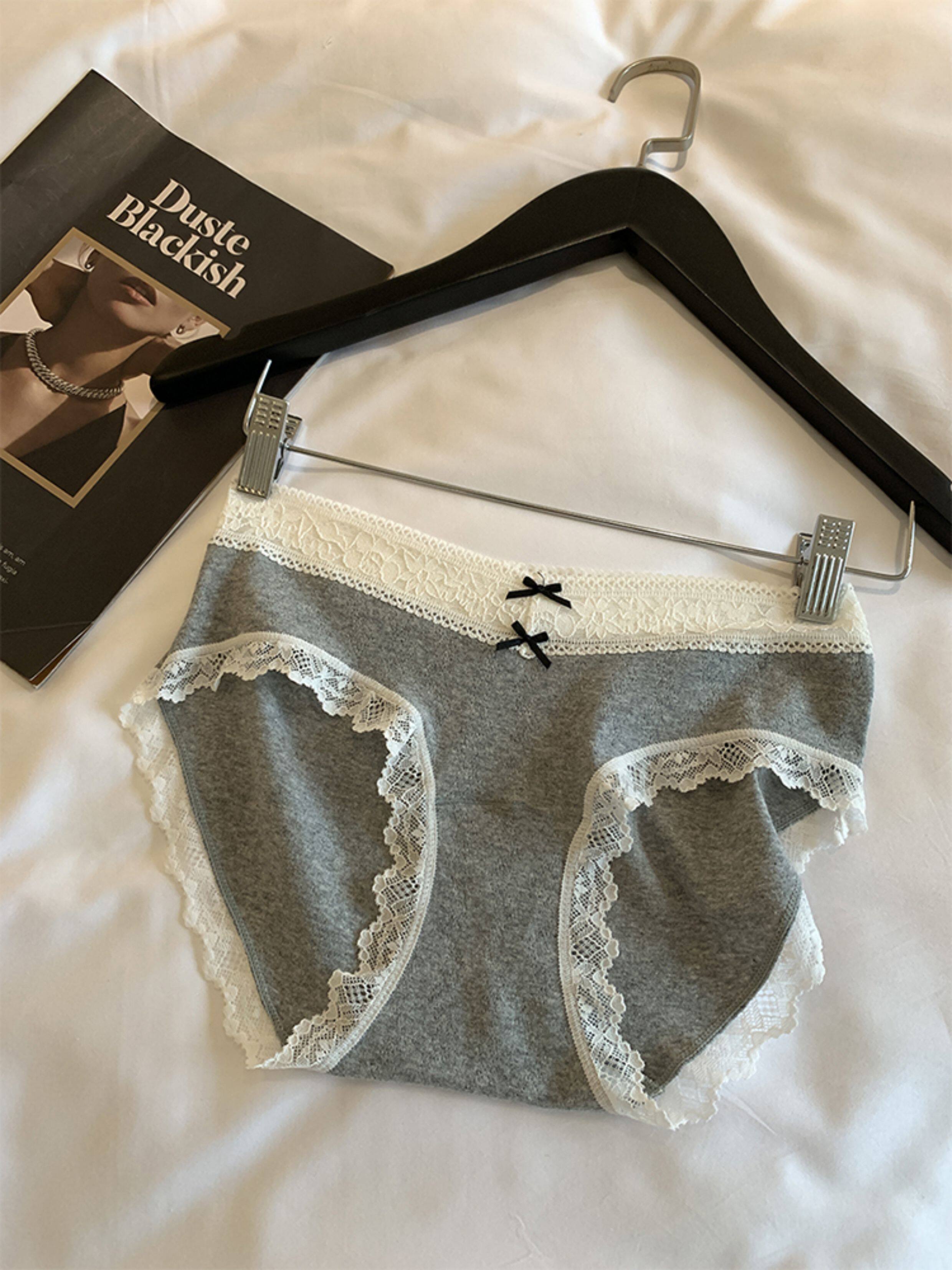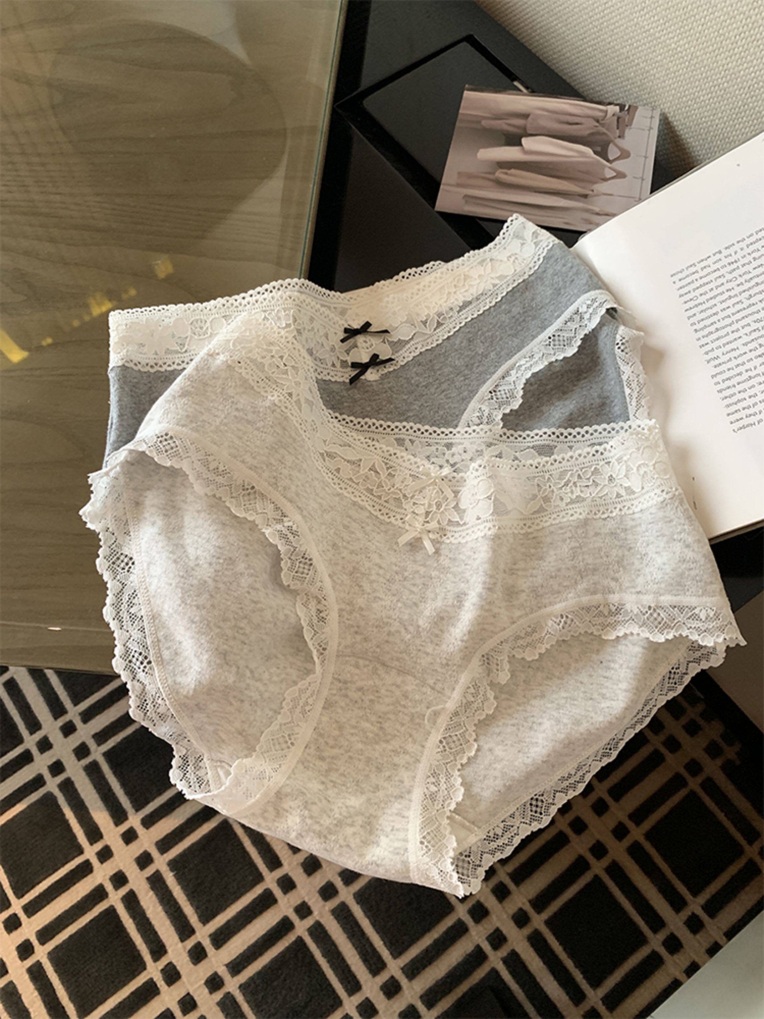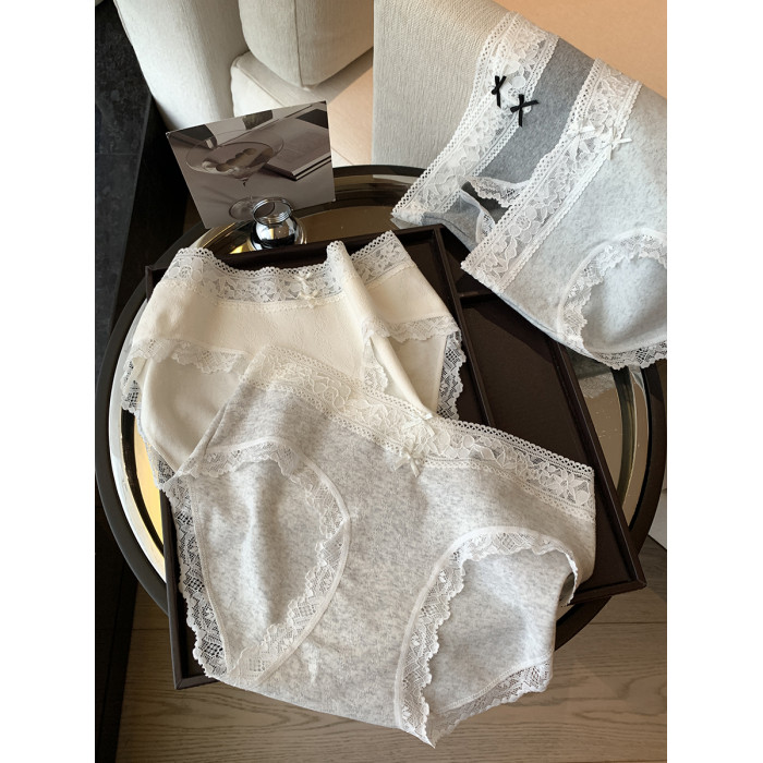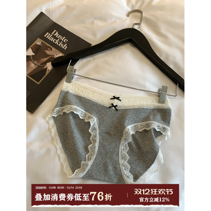 馨幫幫Bra 蕾絲邊蝴蝶結拼接內褲女抑菌純棉加長襠透氣親膚三角褲