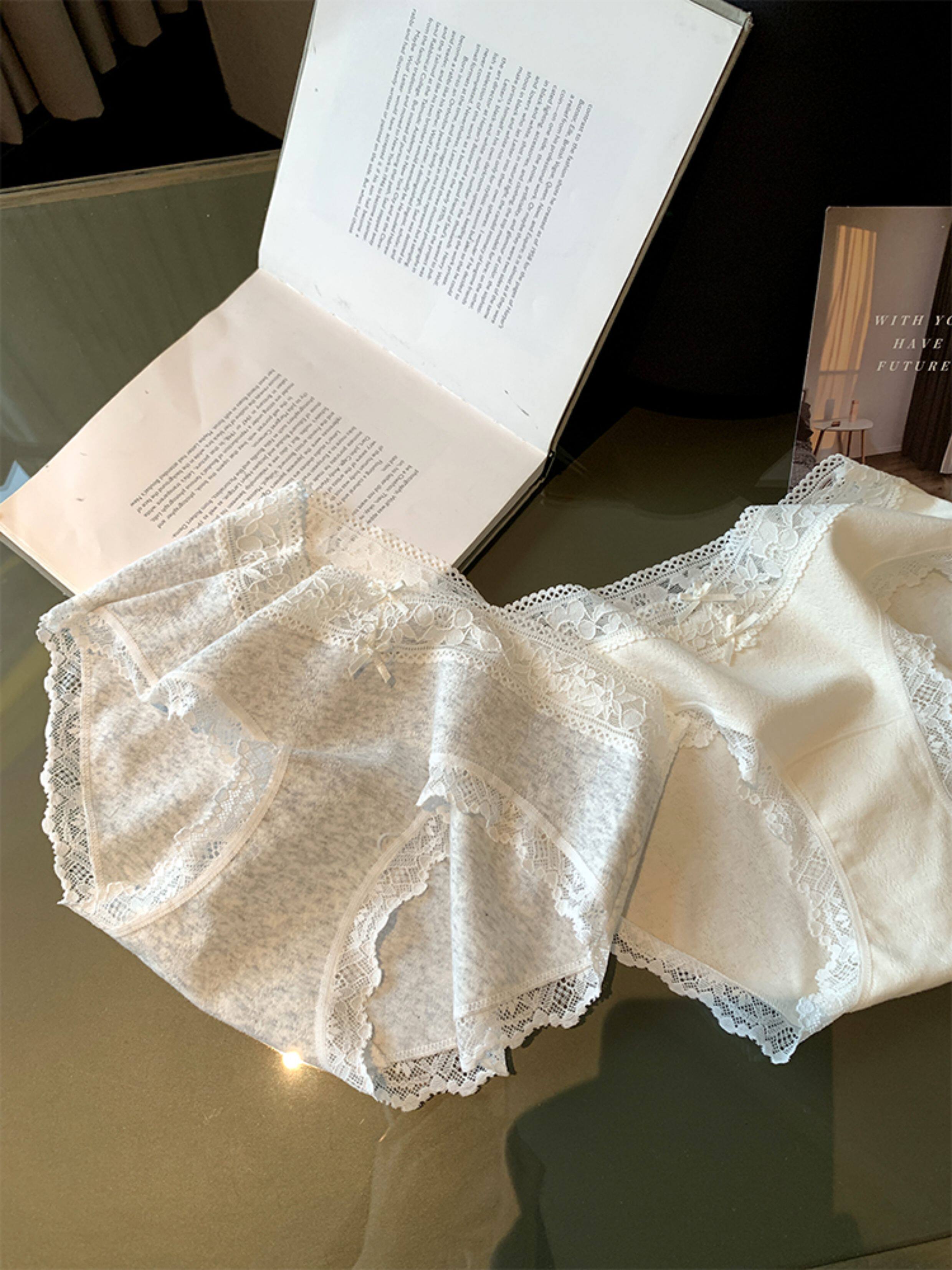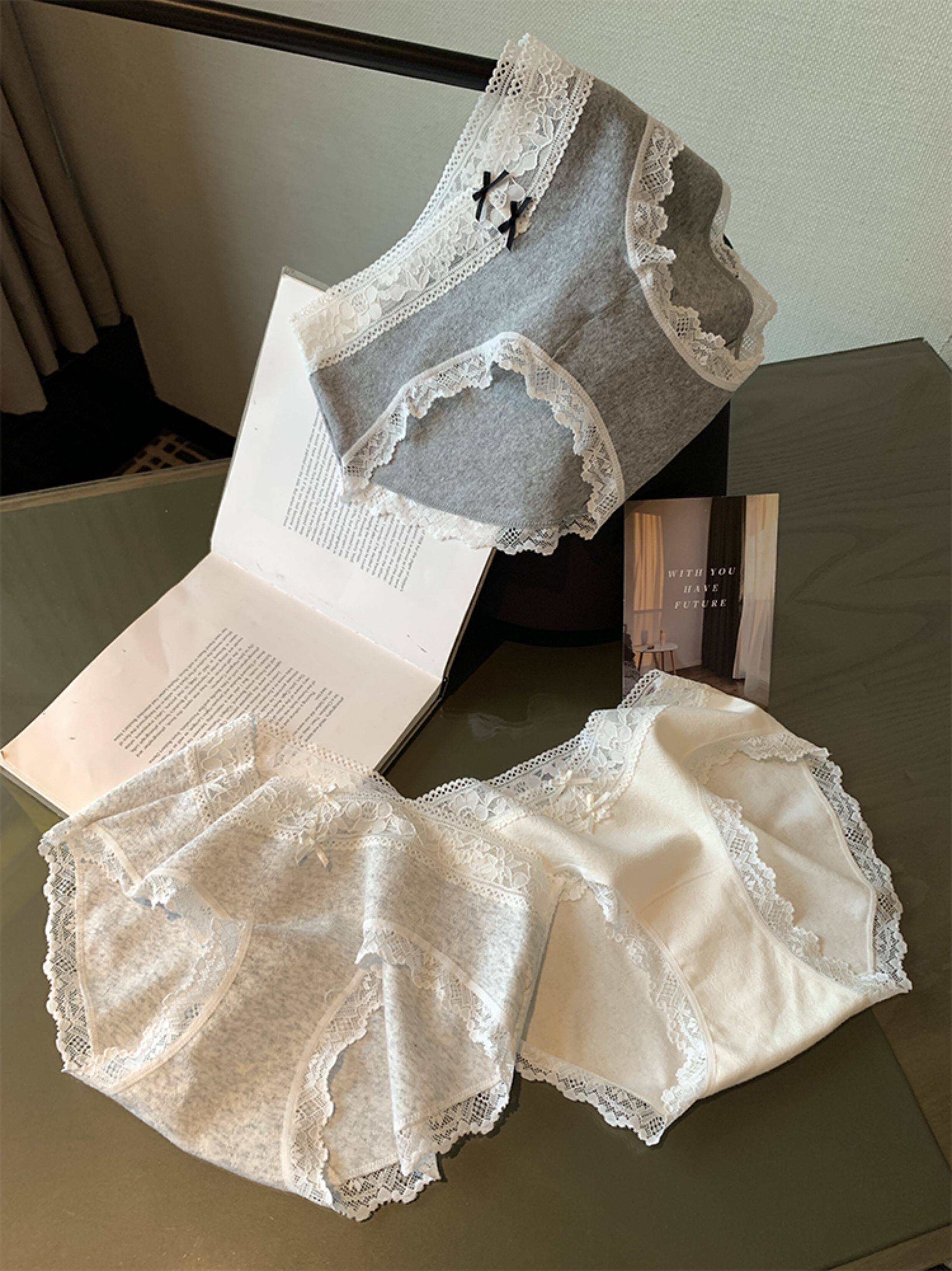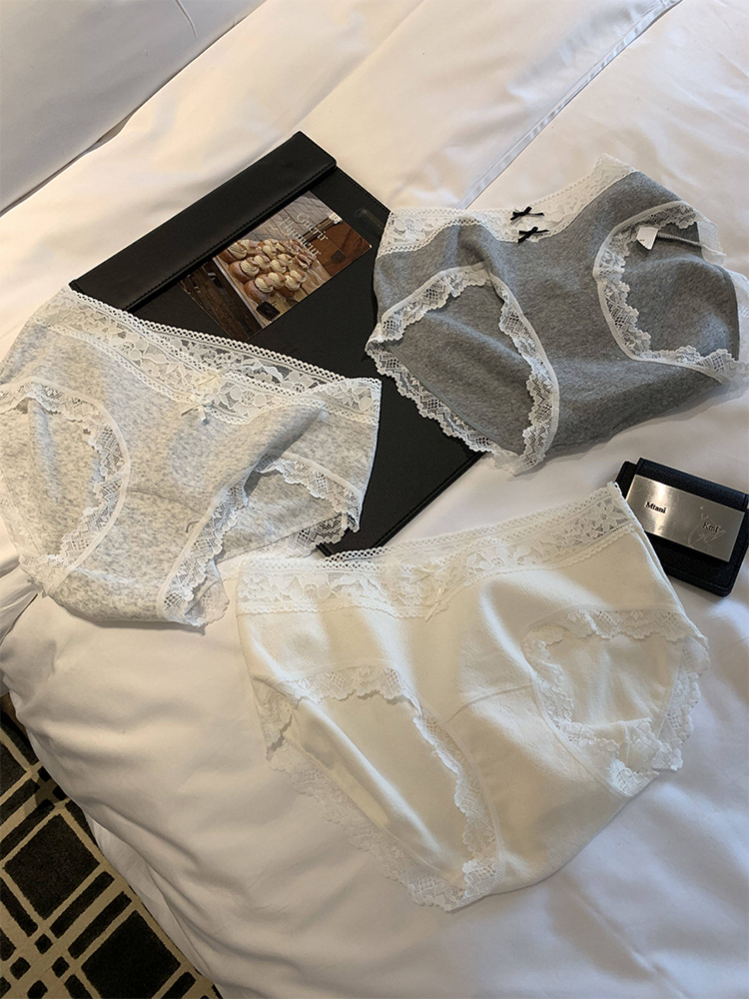 馨幫幫Bra 蕾絲邊蝴蝶結拼接內褲女抑菌純棉加長襠透氣親膚三角褲