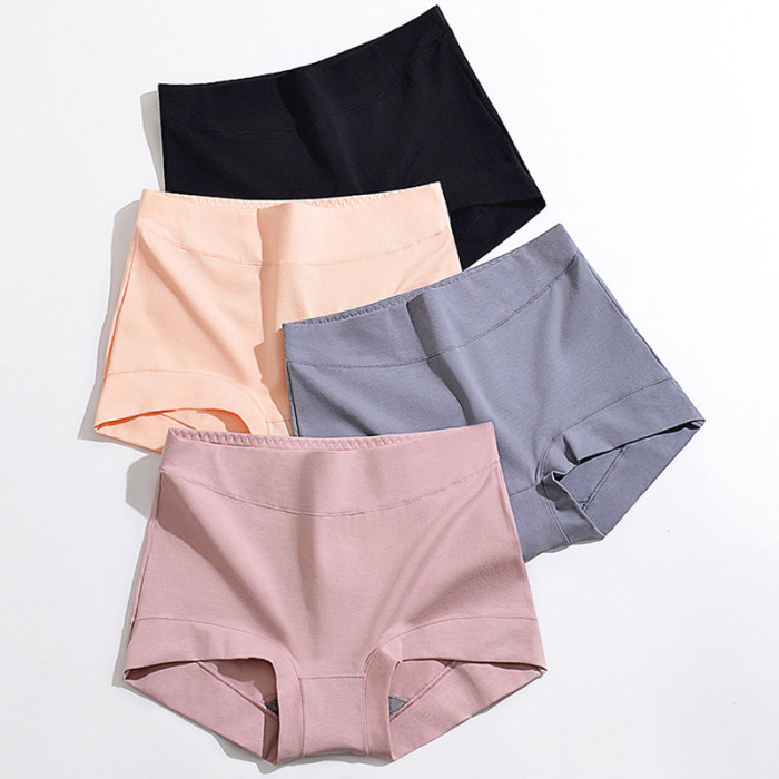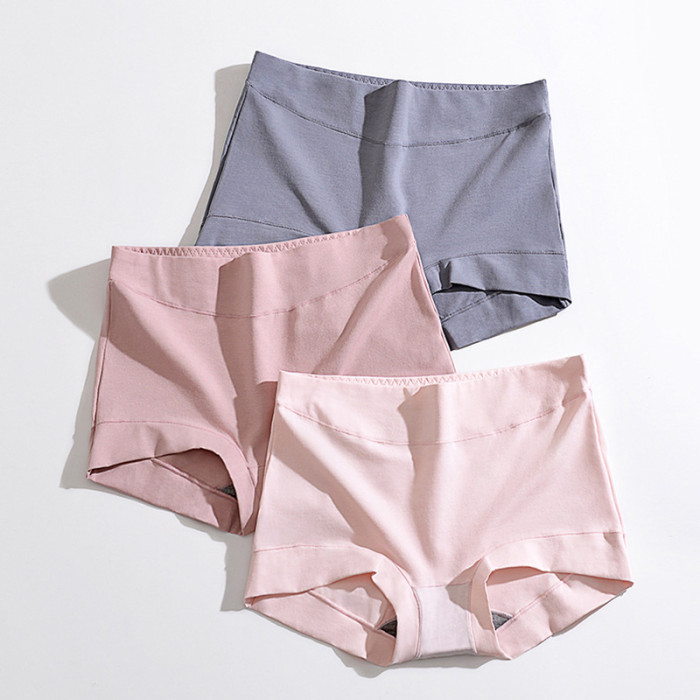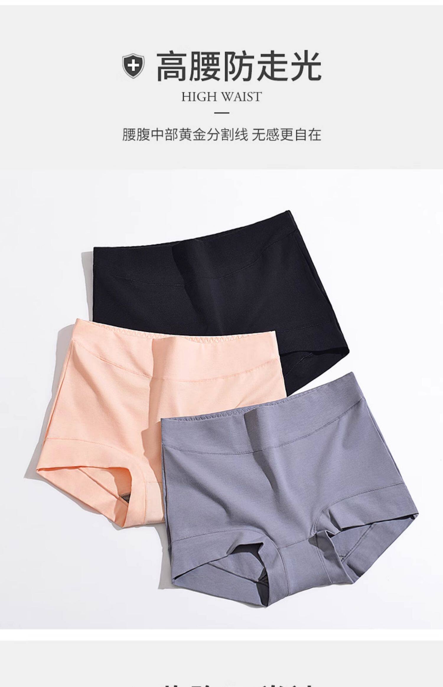 3條裝女士純棉高腰小平角內褲手骨無痕棉質純色大碼胖子安全短褲
