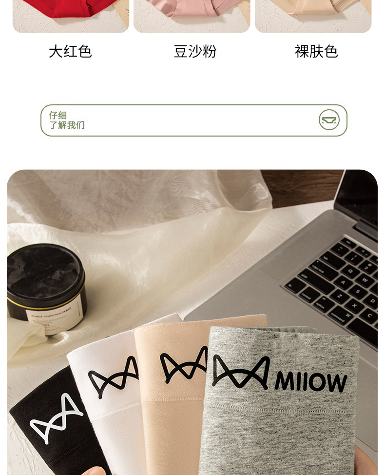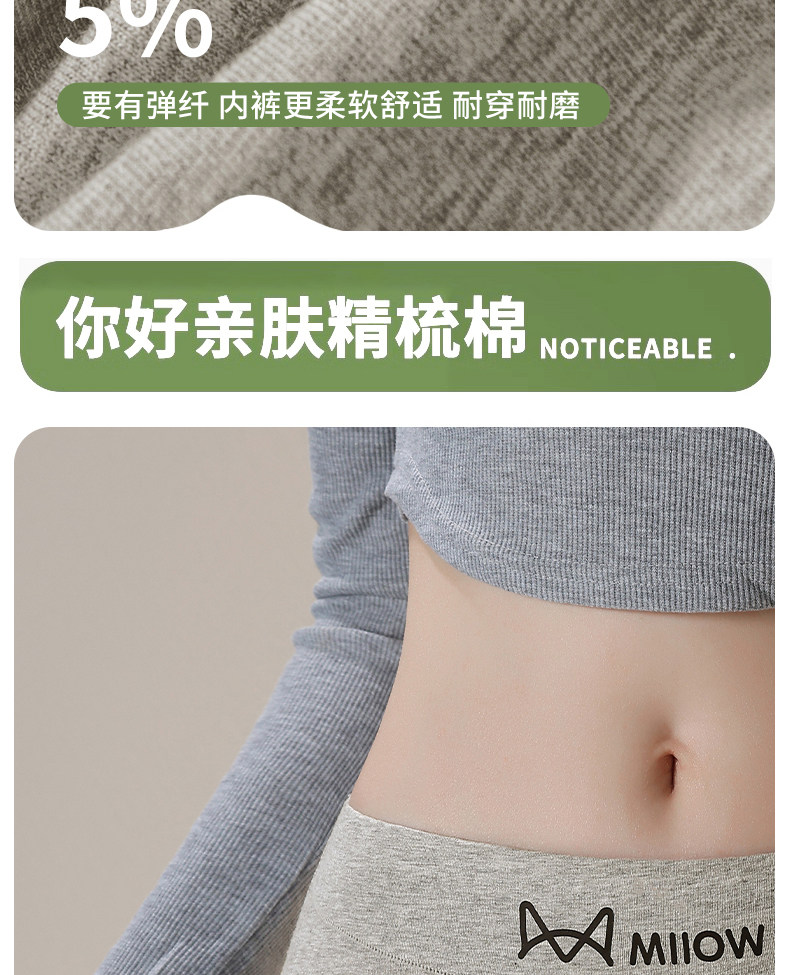 貓人純棉內褲女士無痕中腰小平角包臀全棉抑菌襠女生三角褲2025新