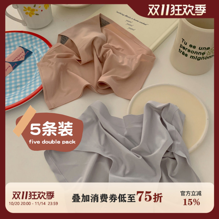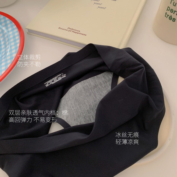 馨幫幫Bra 純色舒適透氣女士三角褲一片式無痕內褲女夏冰絲薄款