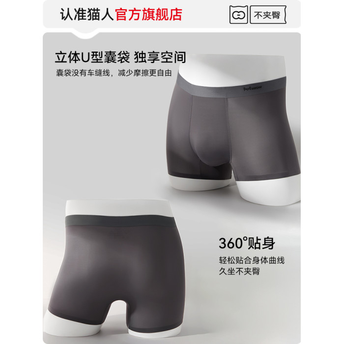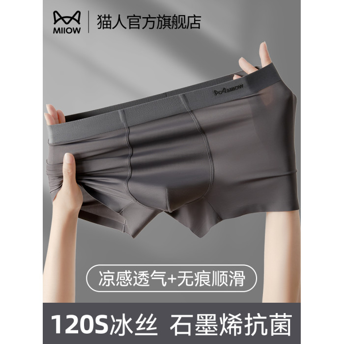 貓人男士內褲冰絲四角褲2025新款無痕夏季薄款透氣男生平角短褲頭