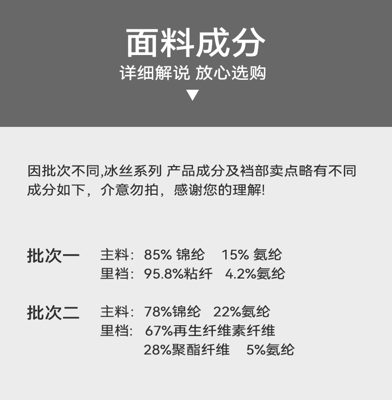 | 大身材質成分 | 聚醯胺纖維(錦綸)78% 聚氨酯彈性纖維(氨綸)22% |