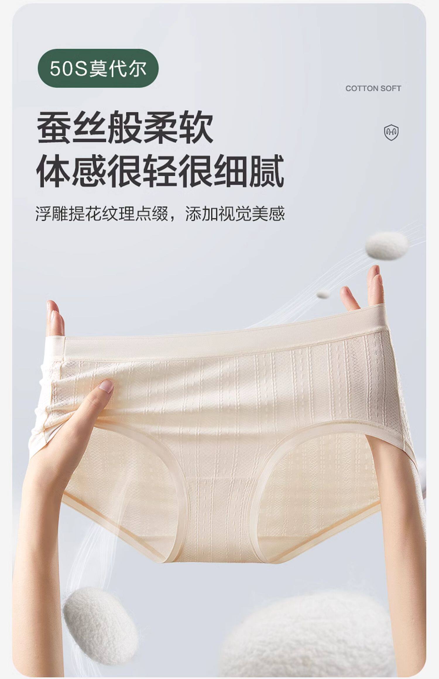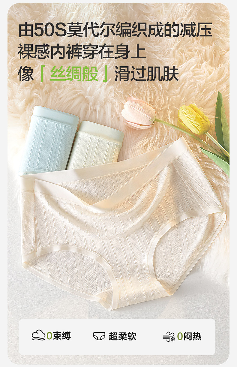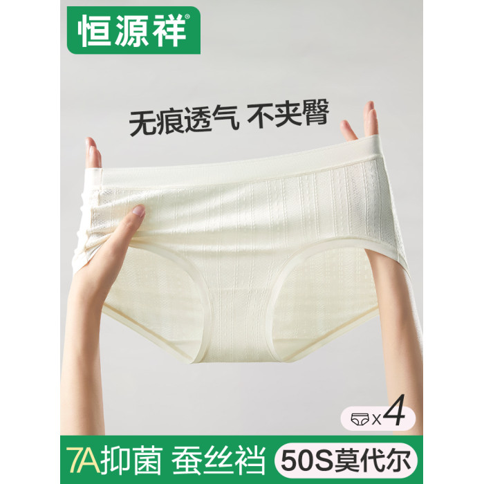 恒源祥莫代爾無痕女士內褲2025新款桑蠶絲7a抗菌透氣女生三角褲頭