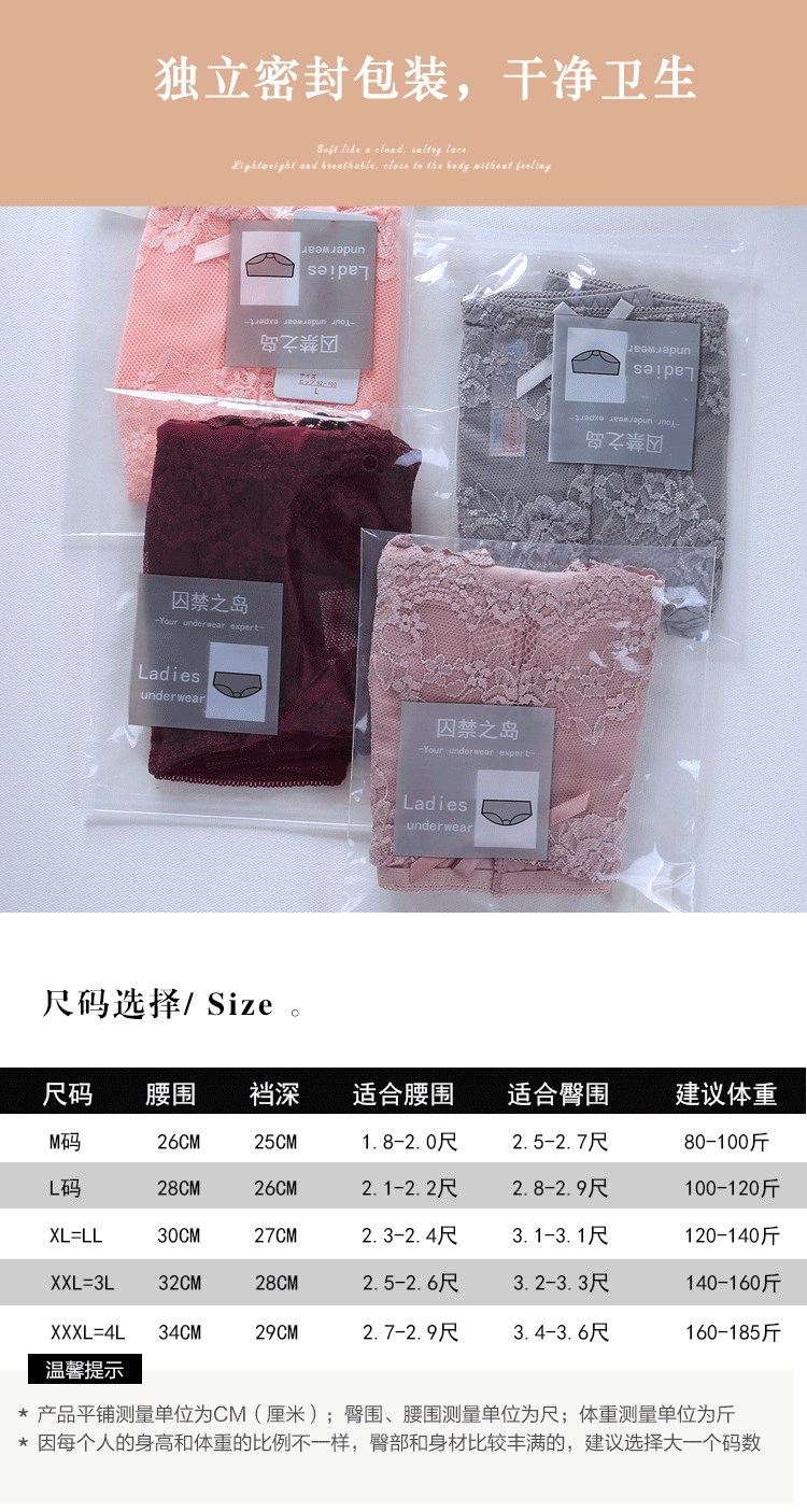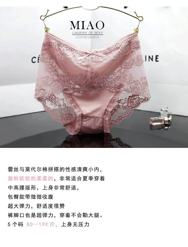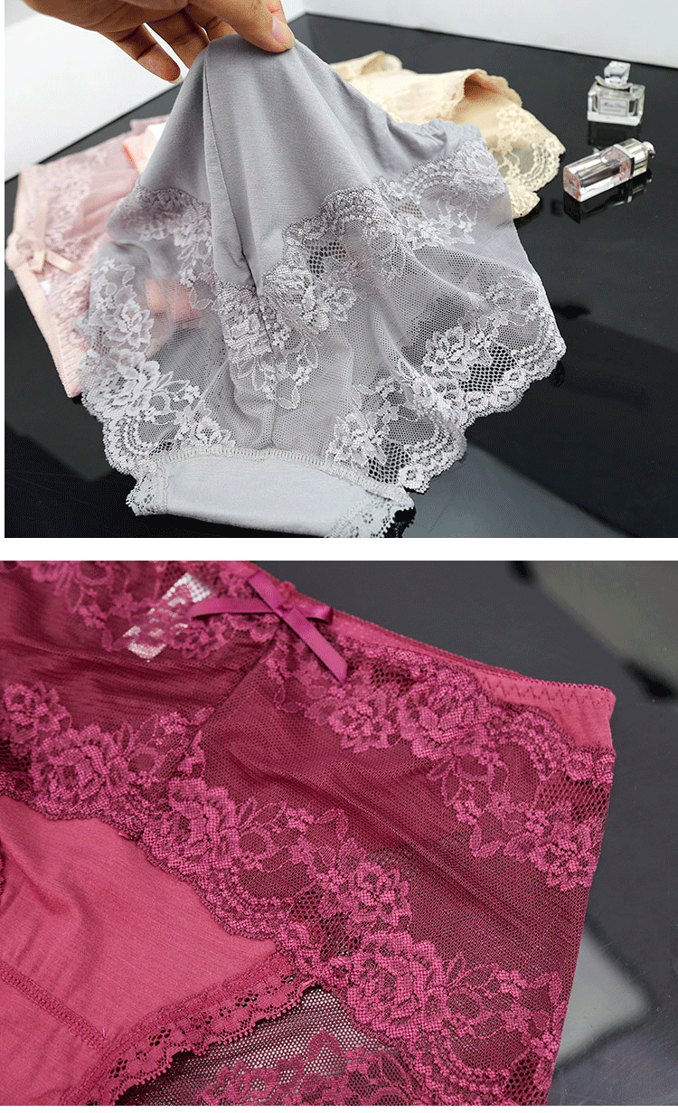 4條性感蕾絲內褲女款 莫代爾棉中腰無痕短褲高腰純色大碼胖mm