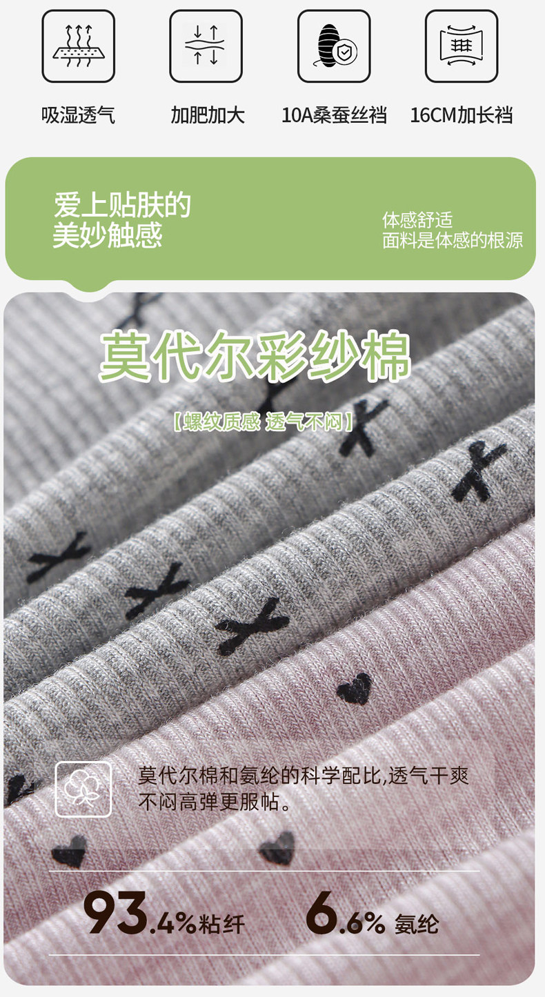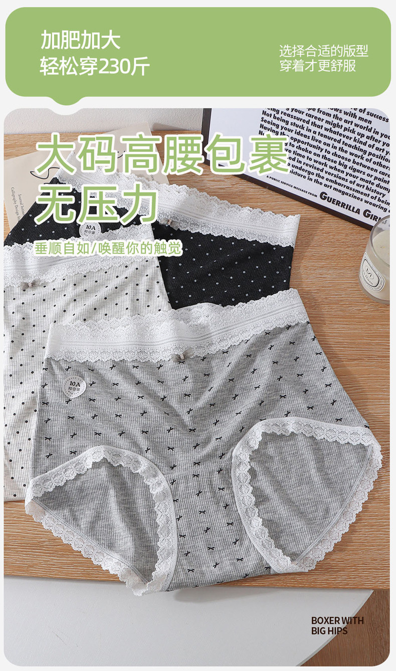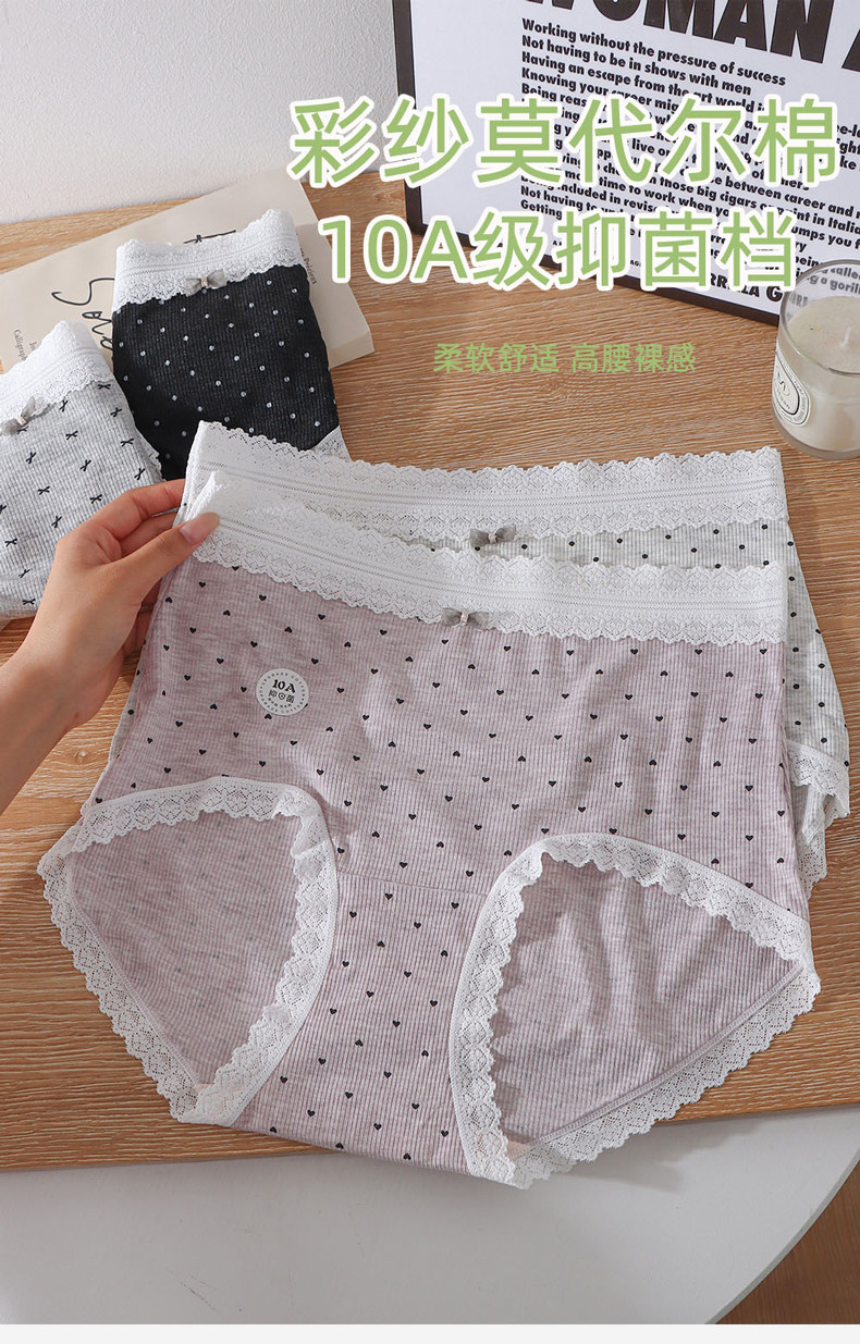 大碼高腰彩紗莫代爾棉內褲女胖mm200斤10A蠶絲抑菌檔包臀不夾檔