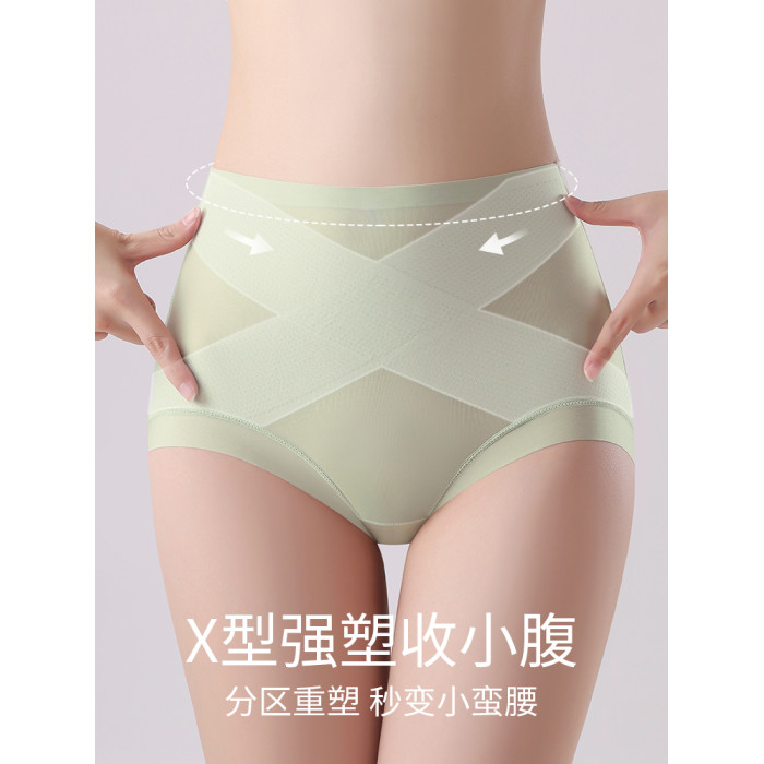 無痕高腰內褲女收腹小肚子翹臀塑形冰絲超薄涼感抑菌蠶絲襠提臀褲