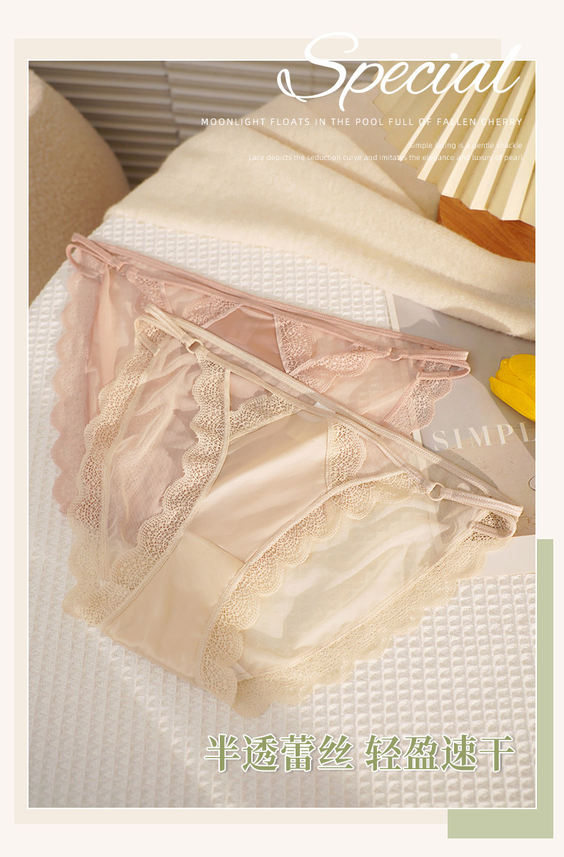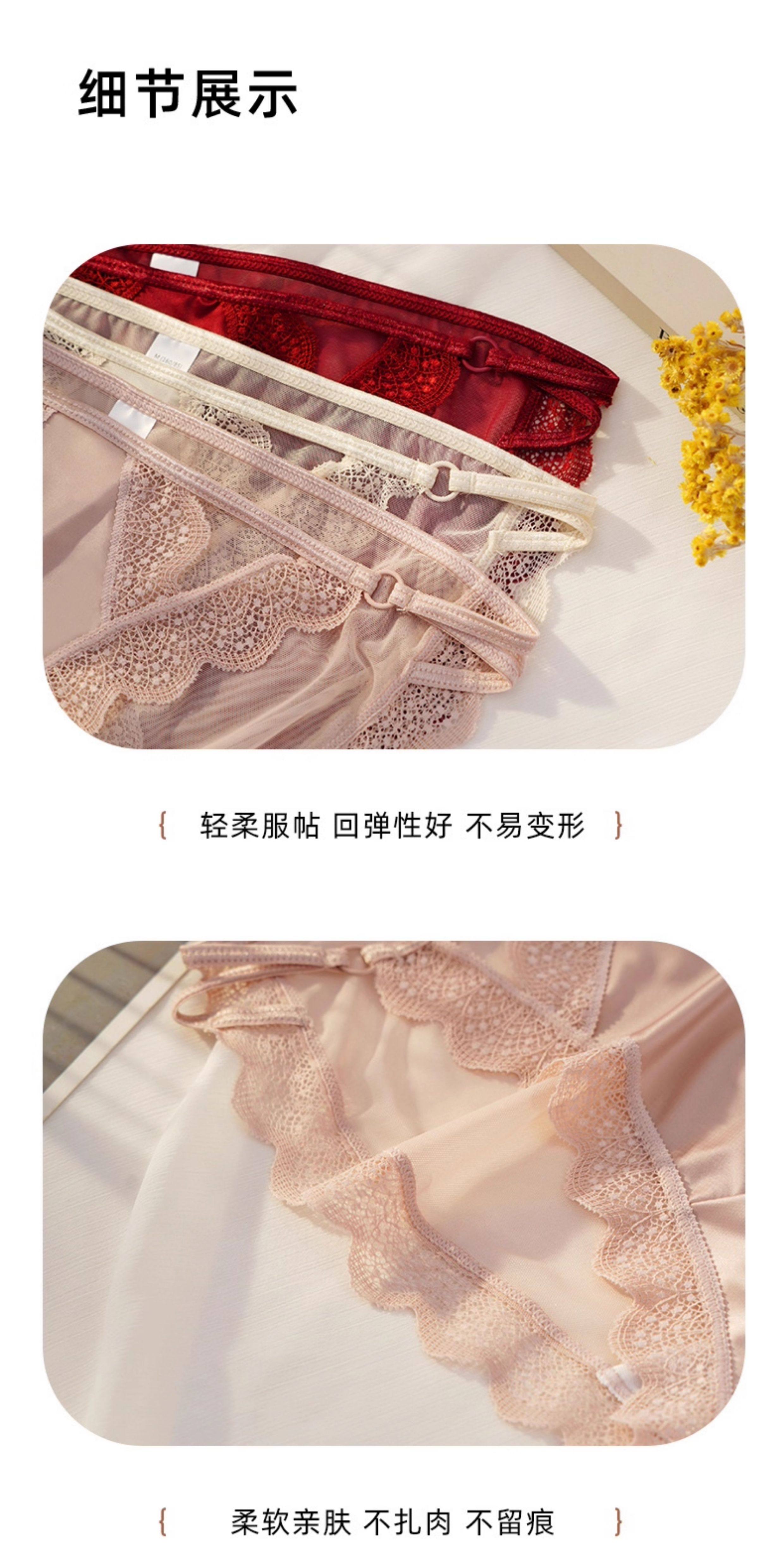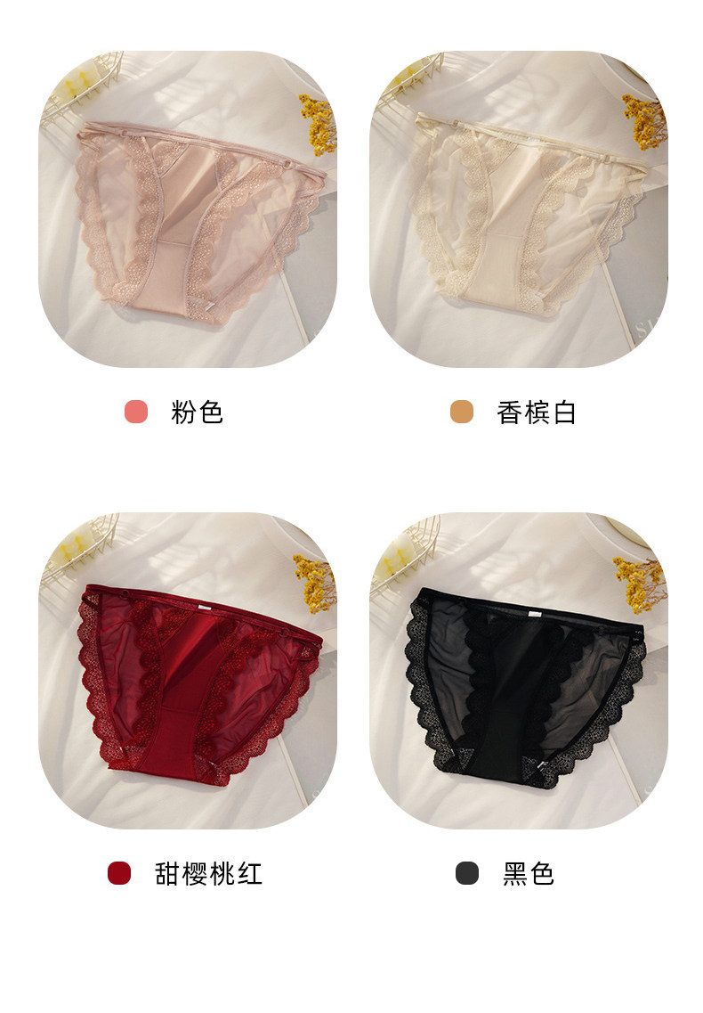 蕾絲內褲女性感新款2025女生純棉襠網紗高級緞面夏季純欲透明紅色