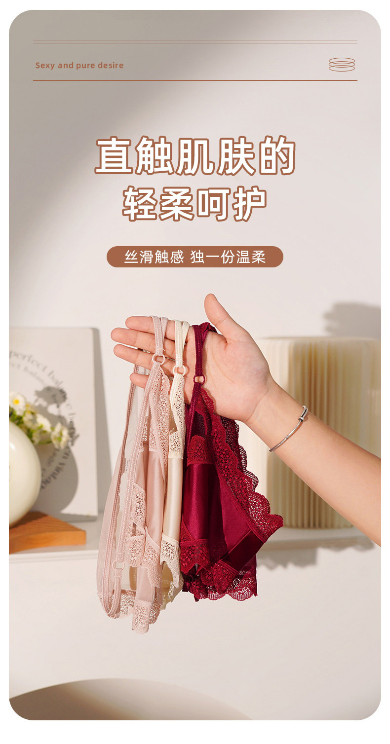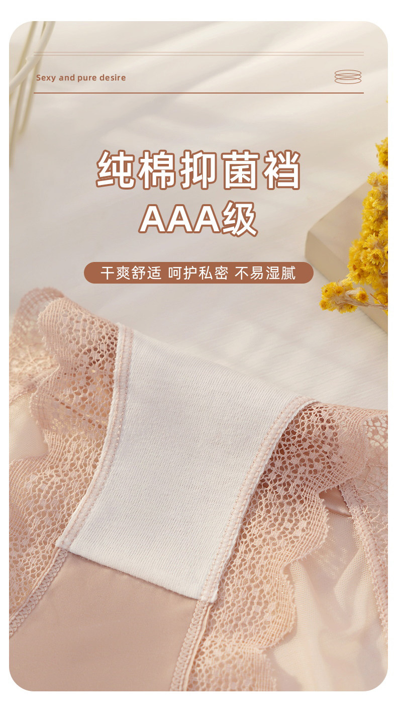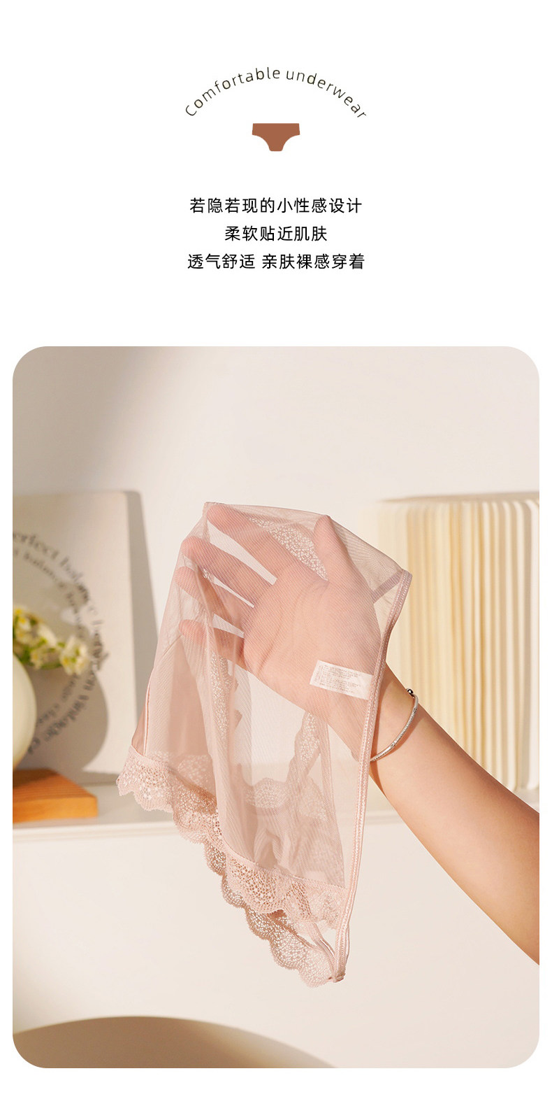 蕾絲內褲女性感新款2025女生純棉襠網紗高級緞面夏季純欲透明紅色