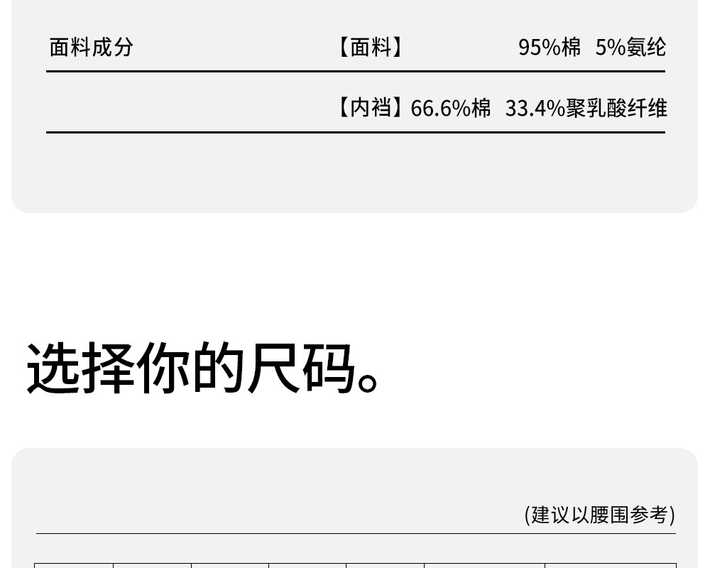 | 襠部材質成分 | 棉66.6% 聚乳酸纖維(PLA)33.4% |