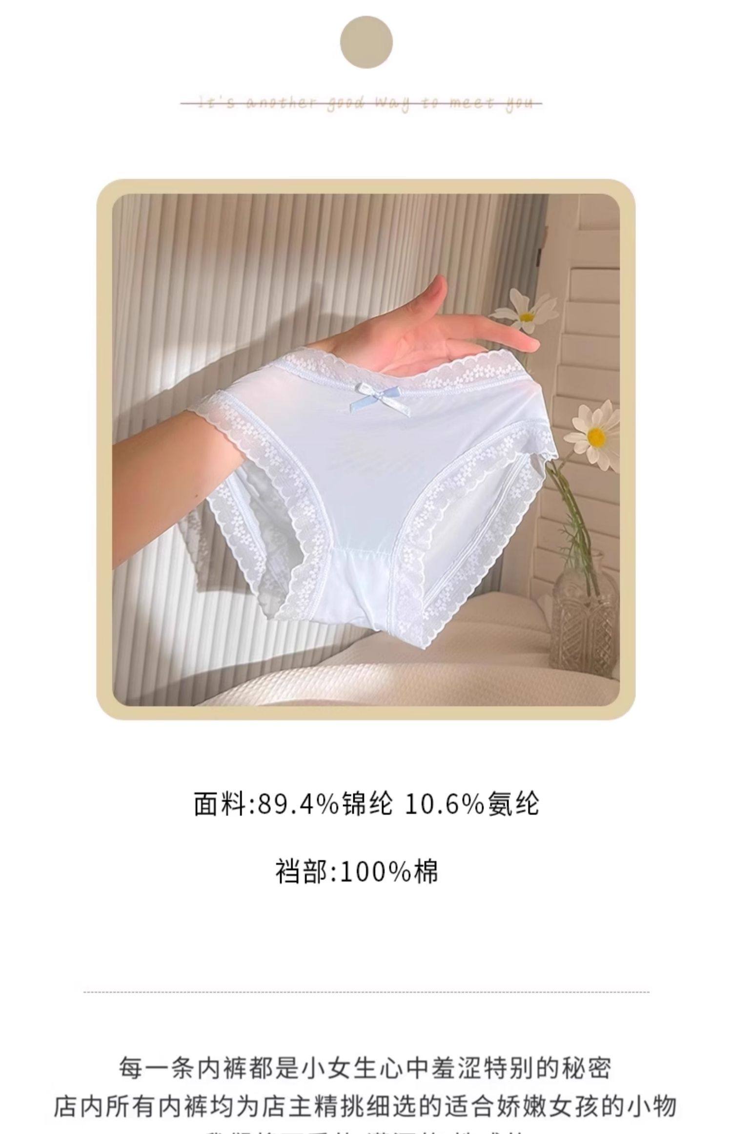 5條蕾絲內褲女無痕夏季薄款冰絲抗菌純棉性感純欲少女生三角短褲