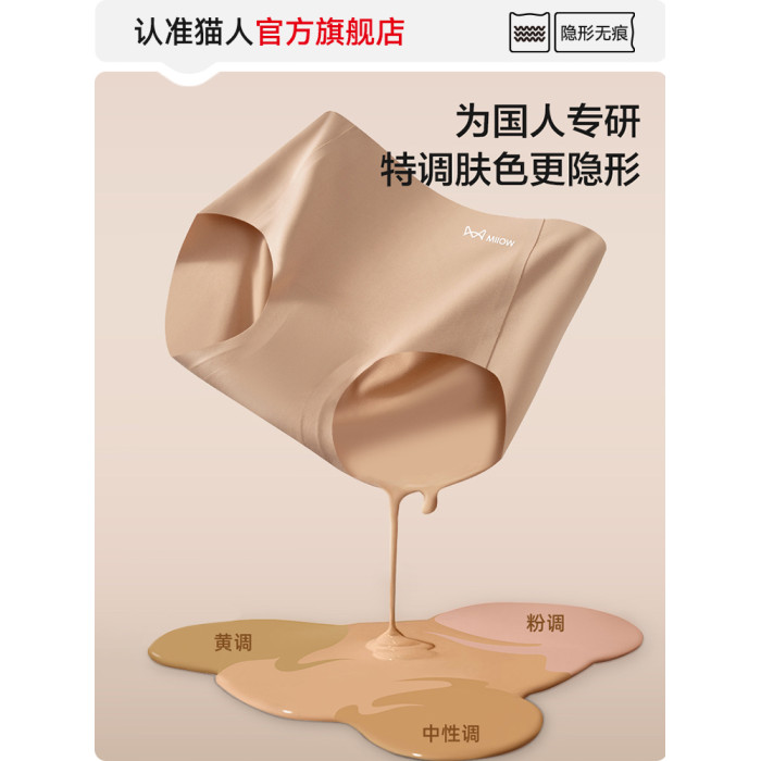 貓人無痕內褲女2025新款抗菌純棉襠夏季薄款中腰冰絲女士三角褲頭