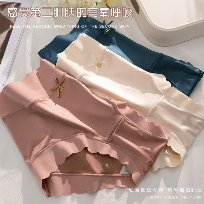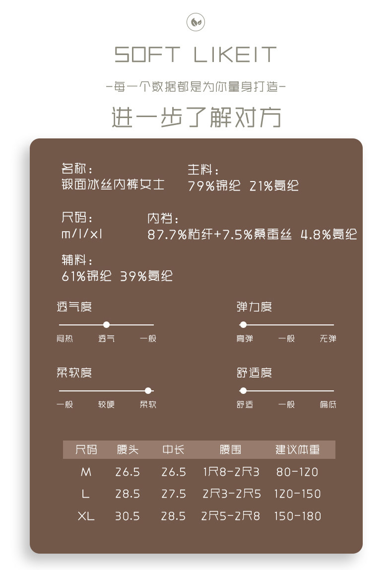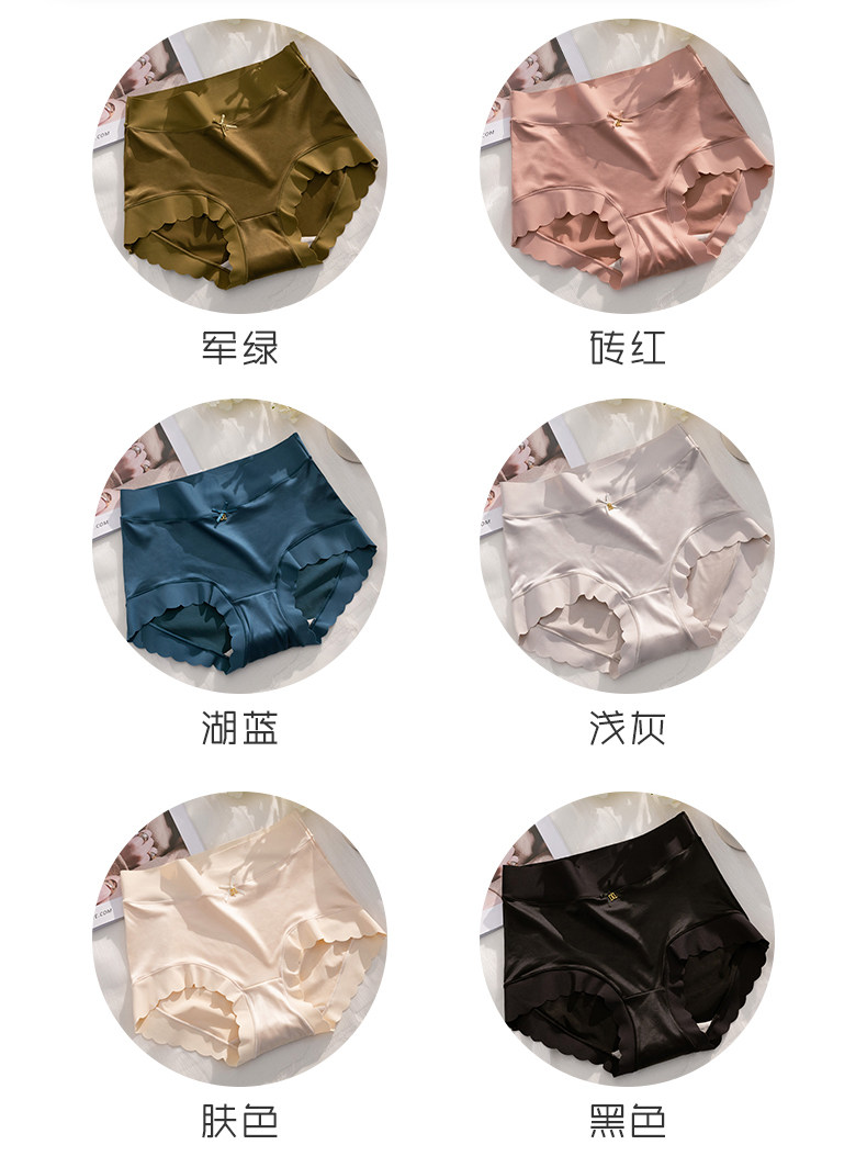 高腰絲綢緞面內褲女士冰絲抗菌無痕透氣舒適親膚收腹三角裸感短褲
