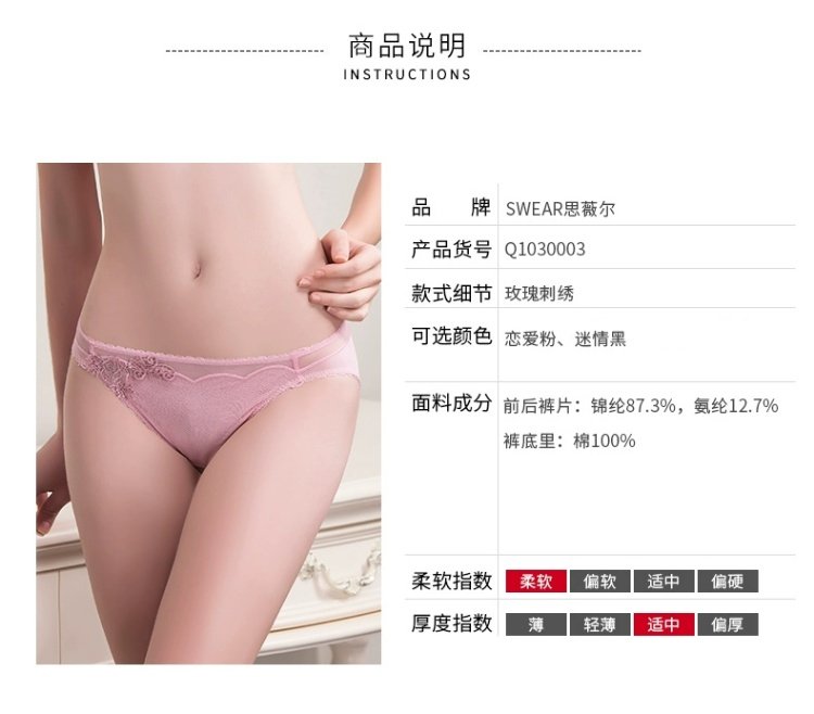 SWEAR/思薇爾刺綉玫瑰花性感提臀氣質內褲低腰三角褲女 Q1030003