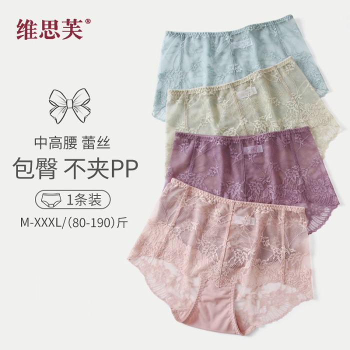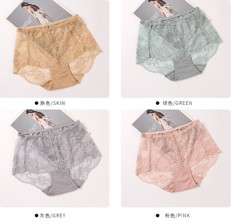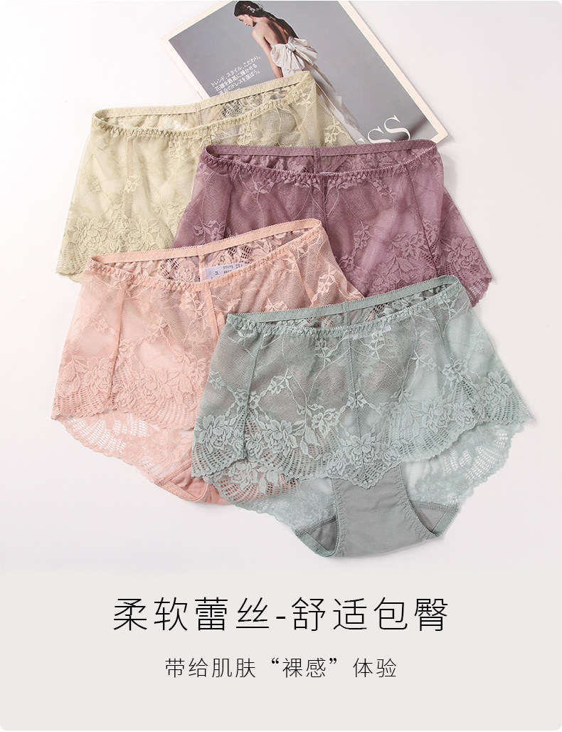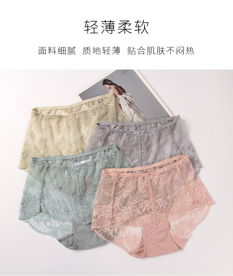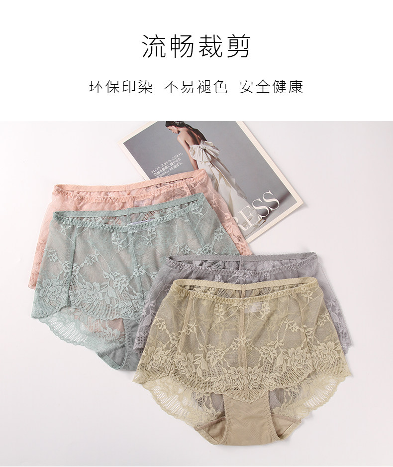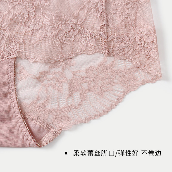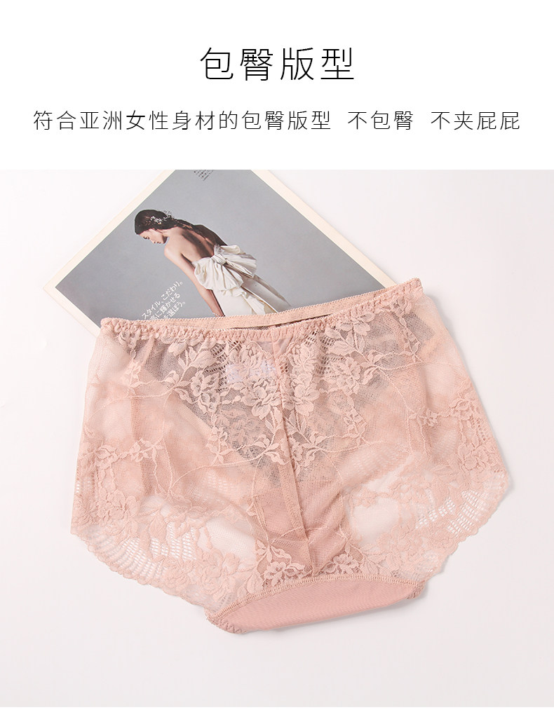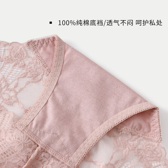 薄款性感蕾絲網紗高腰內褲女士提臀收腹大碼純棉襠無痕短褲頭