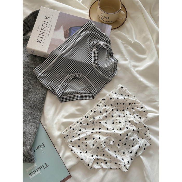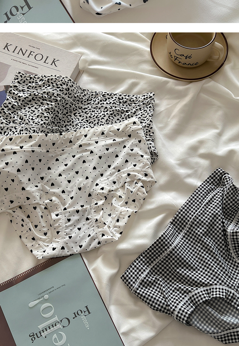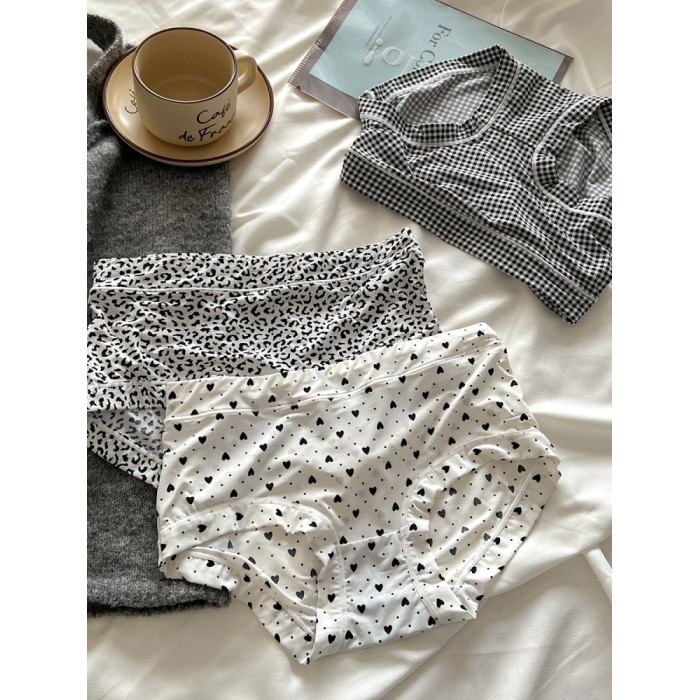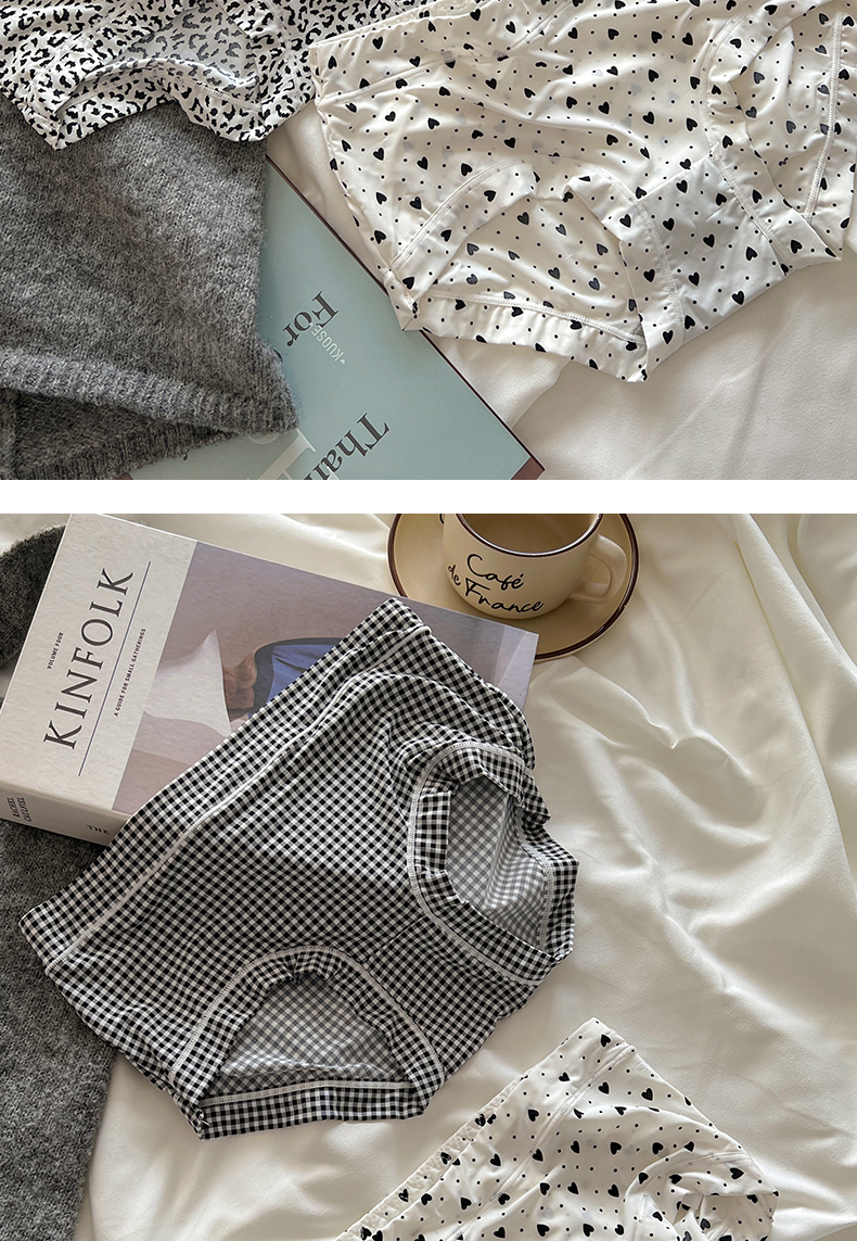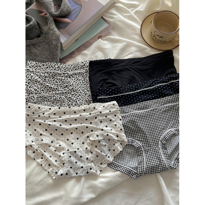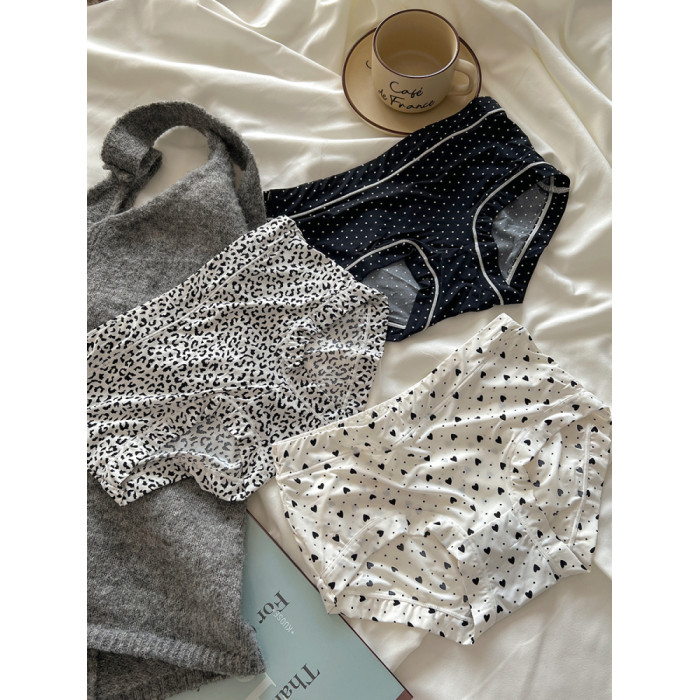 滑霤霤~內褲女冰絲牛奶絲無痕大碼薄款黑格子豹紋三角褲新款