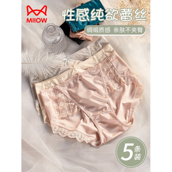貓人內褲女士性感蕾絲純欲2025新款抗菌襠無痕不夾臀女生三角短褲