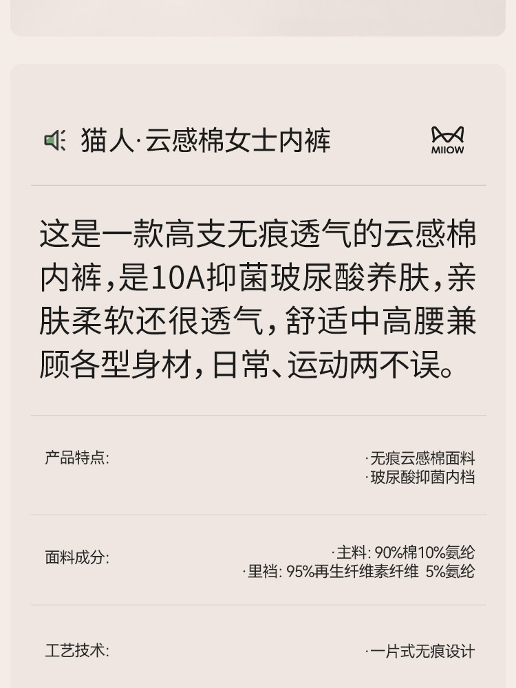 貓人A類純棉內褲女士抑菌高彈無痕透氣2025新款三角短褲女生DQ