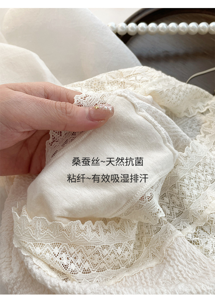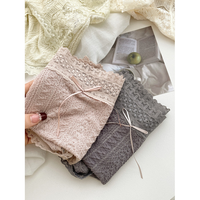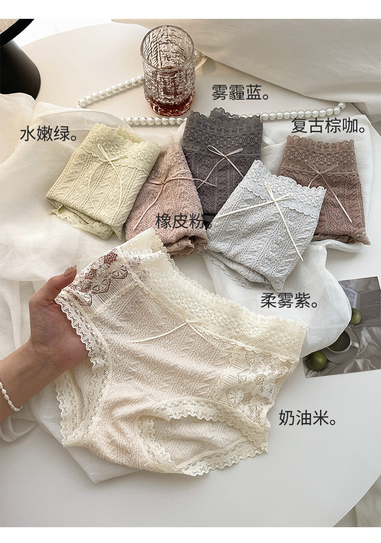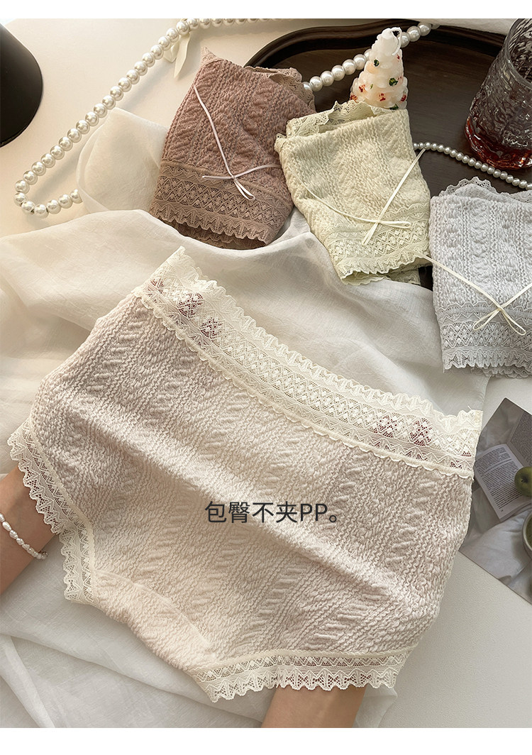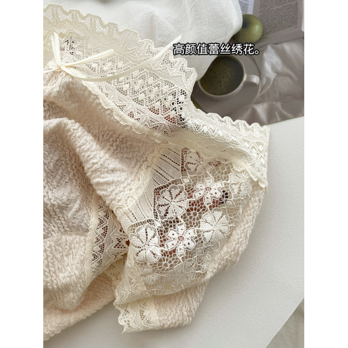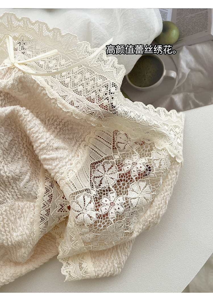 自畱款法式蕾絲泡泡棉!透氣內褲女中腰性感舒適軟糯桑蠶絲抗菌襠
