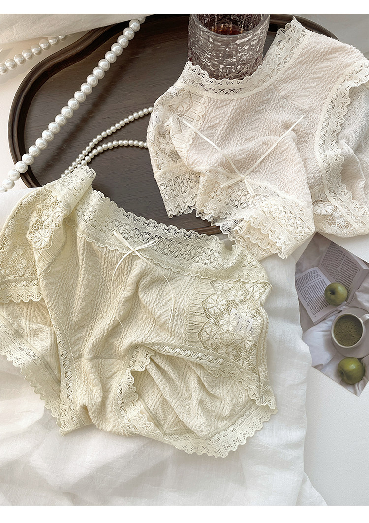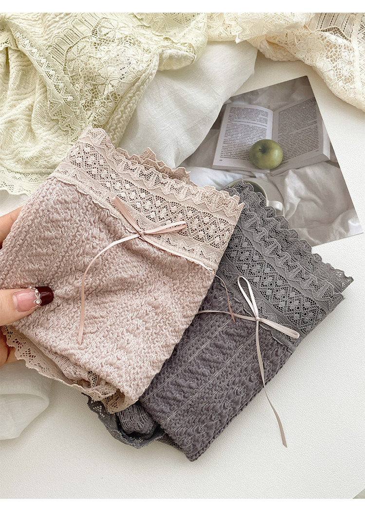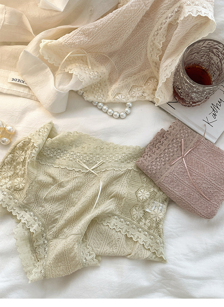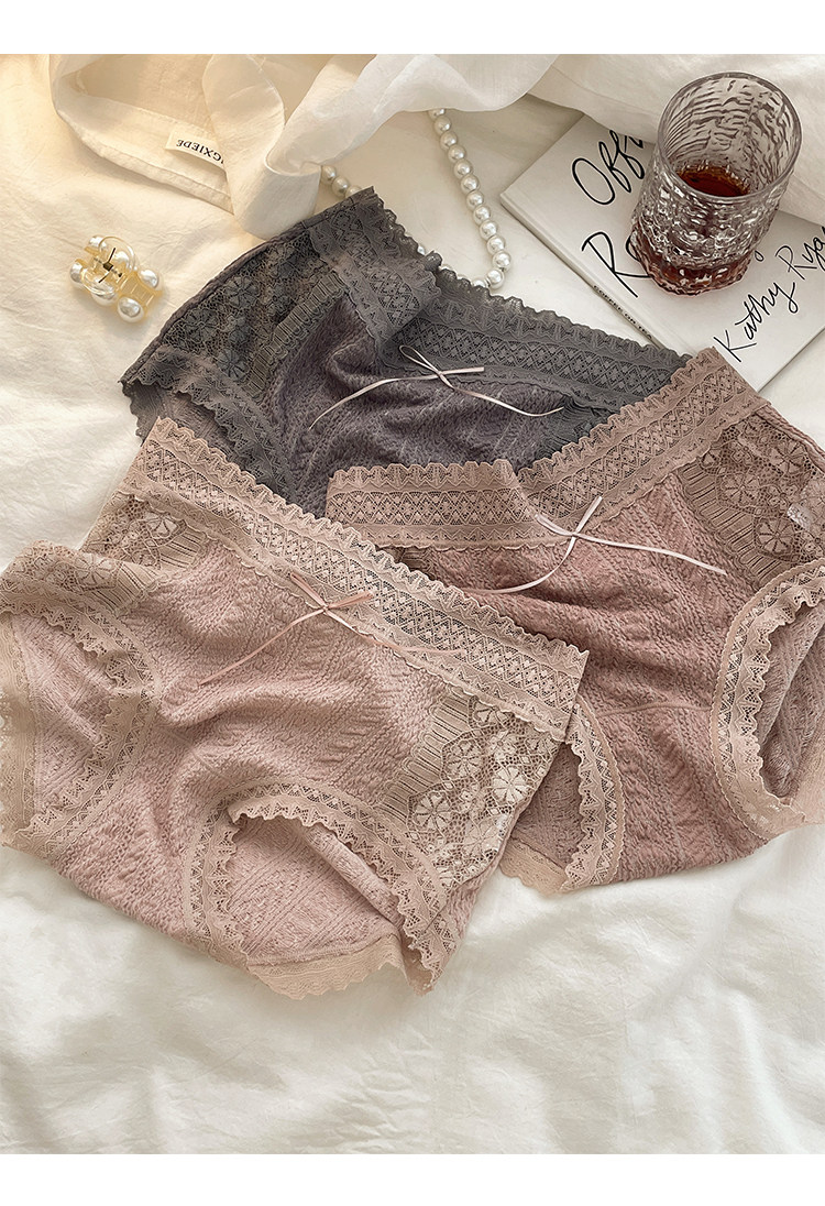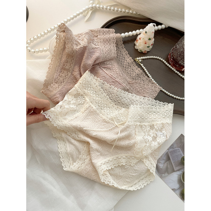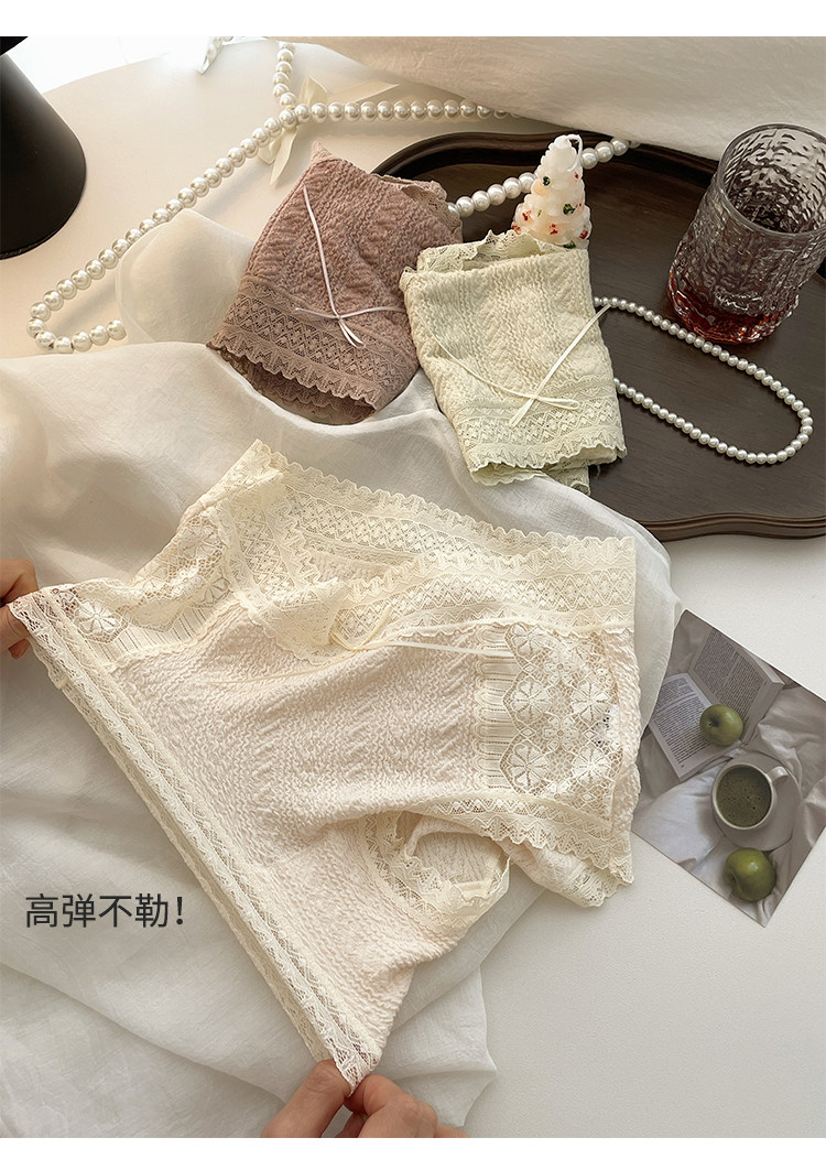 自畱款法式蕾絲泡泡棉!透氣內褲女中腰性感舒適軟糯桑蠶絲抗菌襠