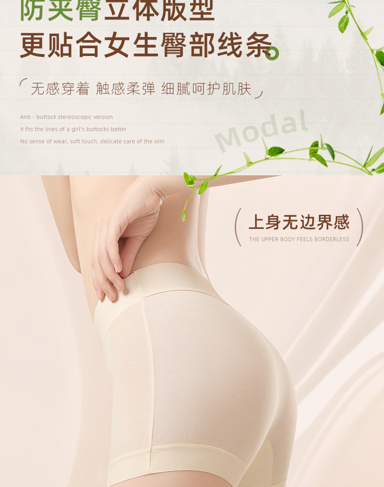 莫代爾平角內褲女士夏季薄款純棉襠防走光安全褲二合一四角短褲頭