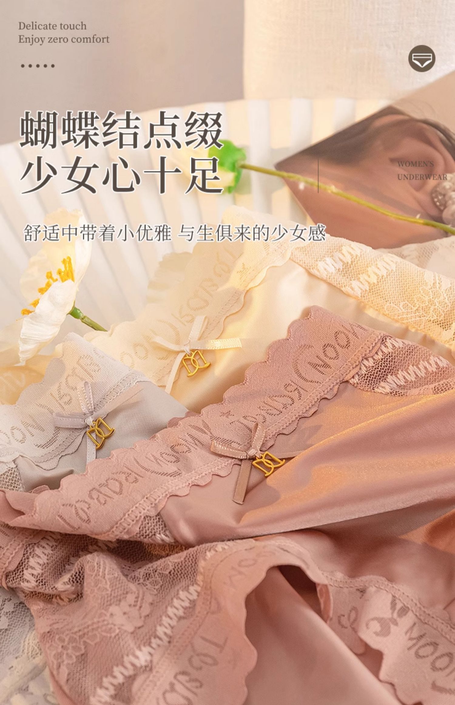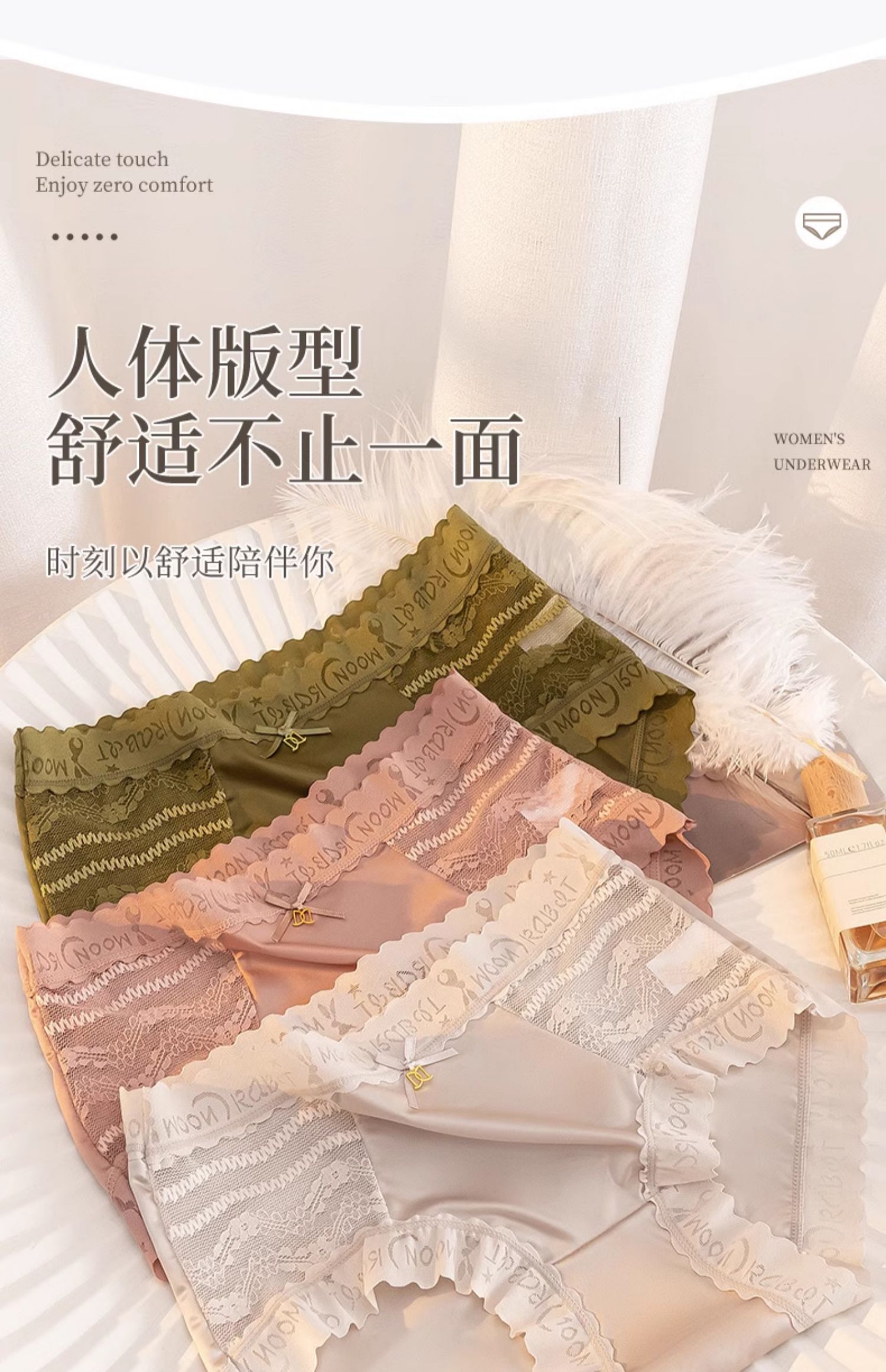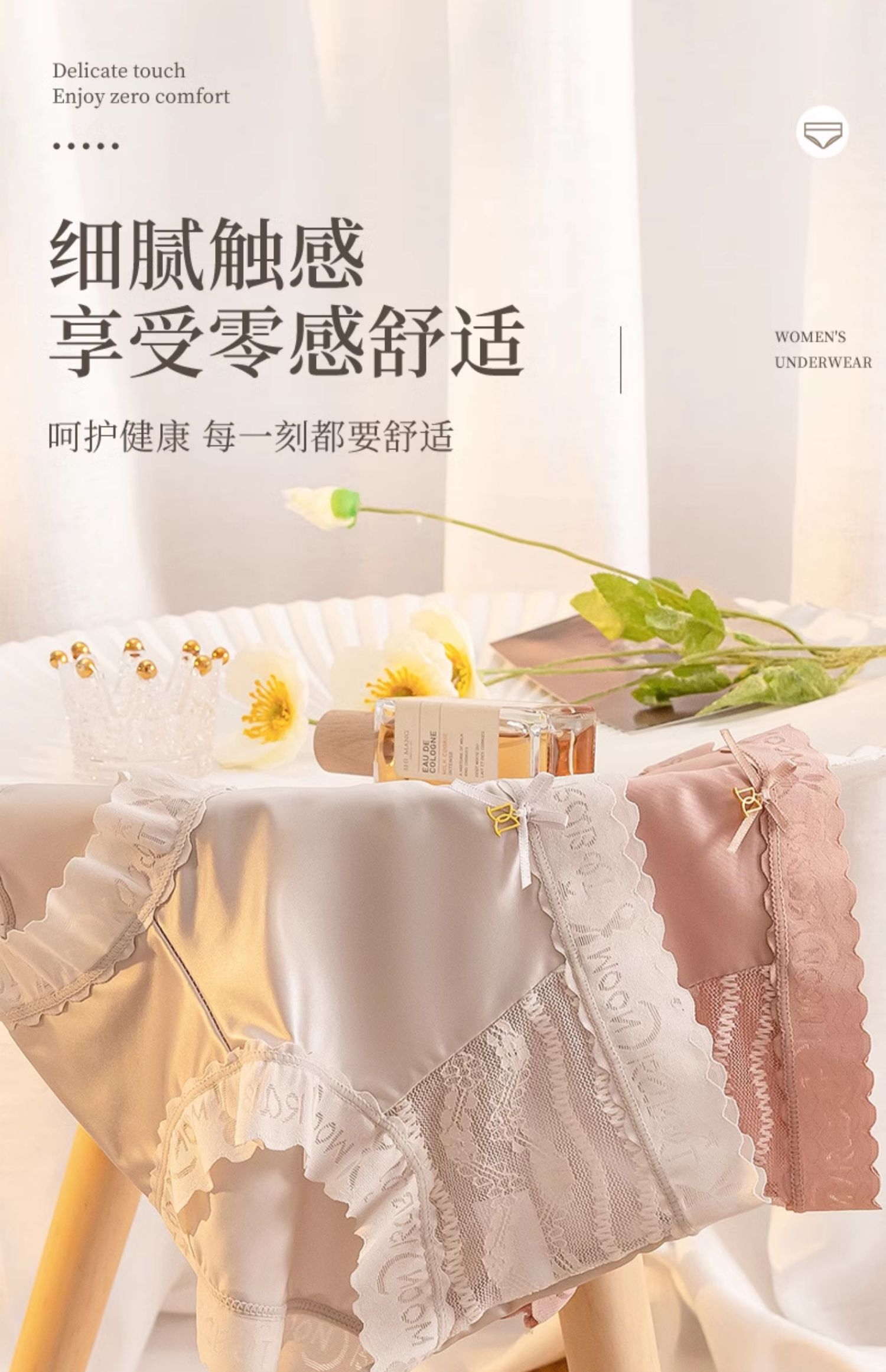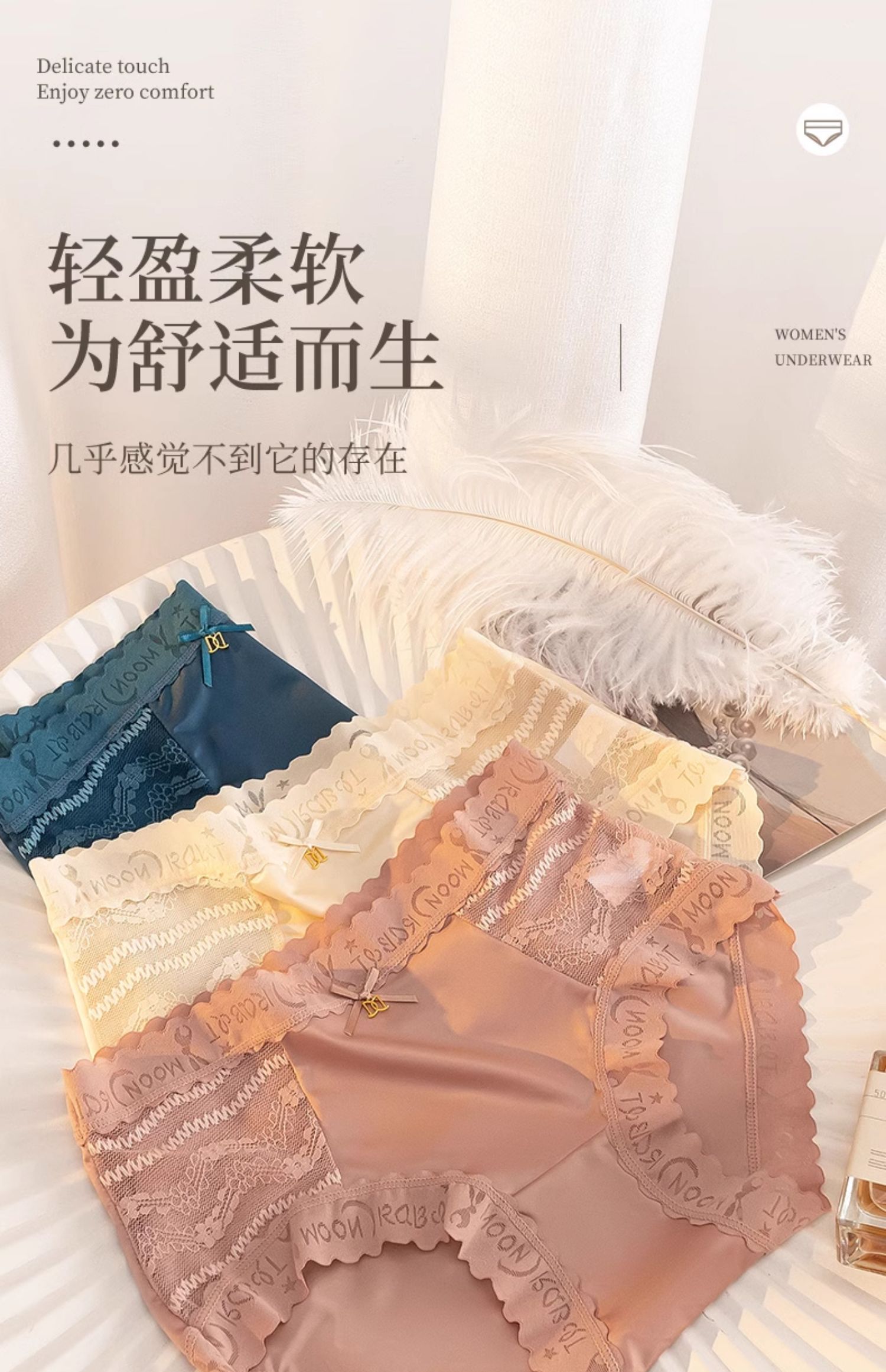 內褲女士純棉全棉襠夏季抗菌少女生性感蕾絲中腰無痕冰絲女式短褲