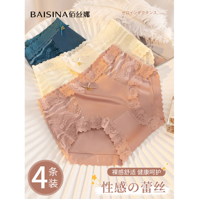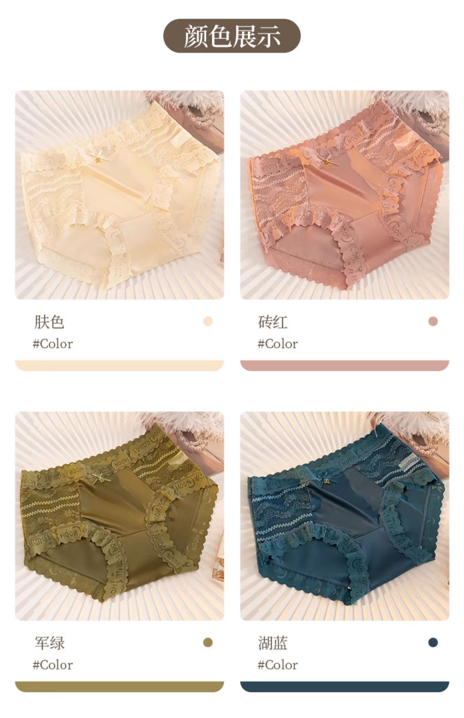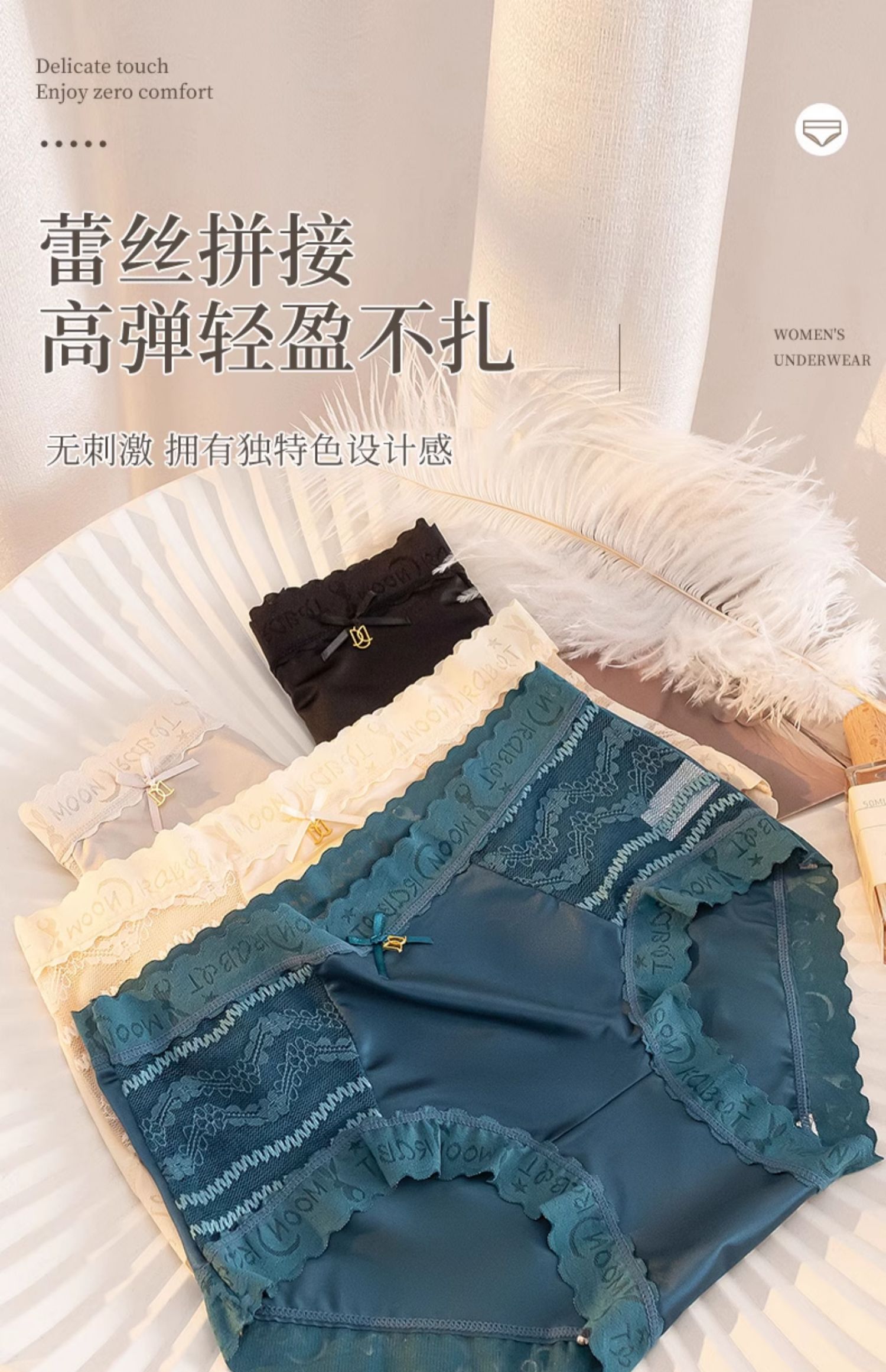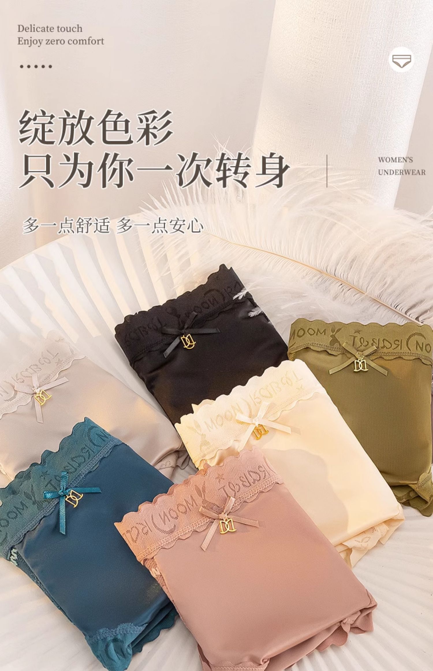 內褲女士純棉全棉襠夏季抗菌少女生性感蕾絲中腰無痕冰絲女式短褲