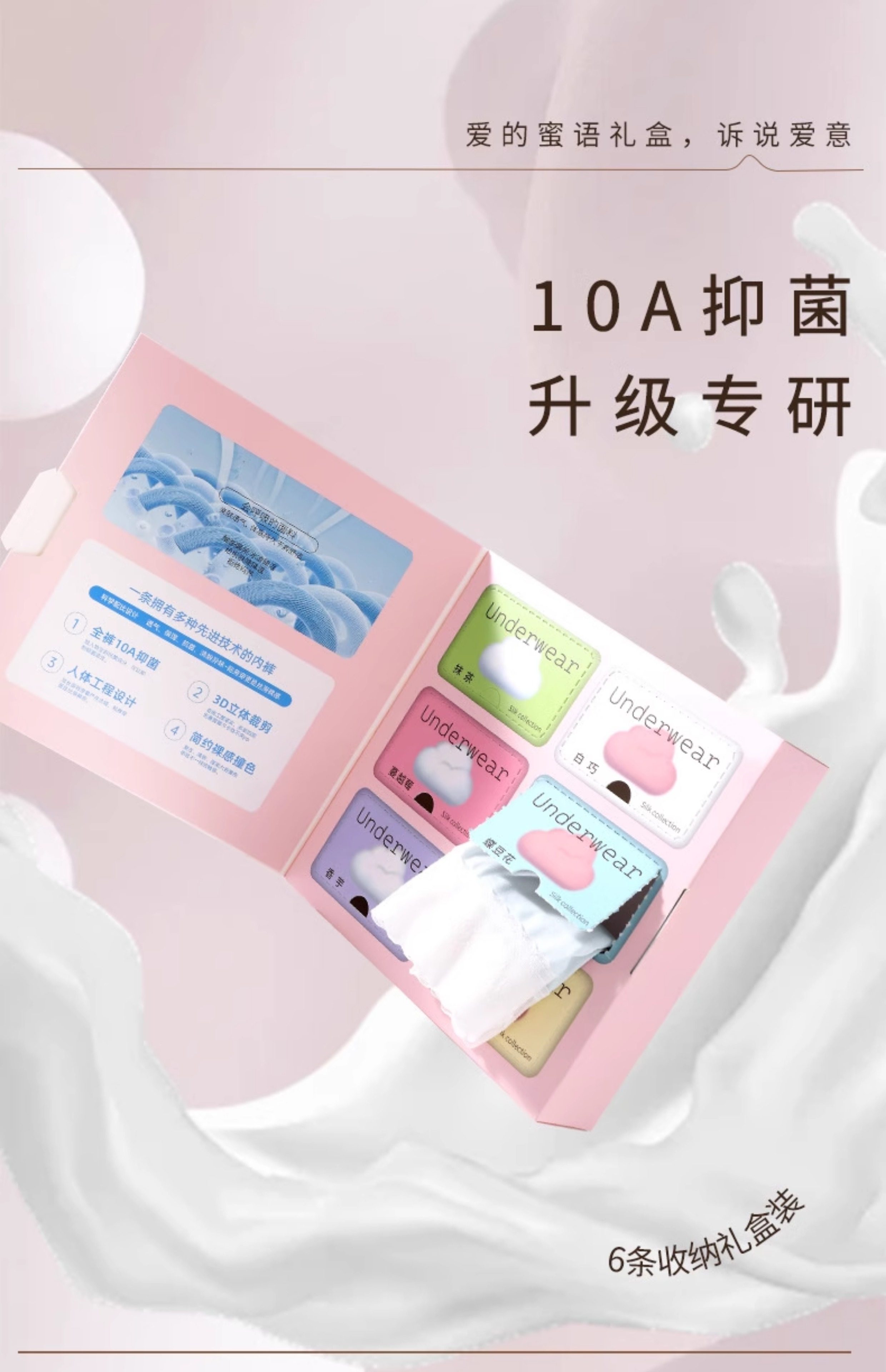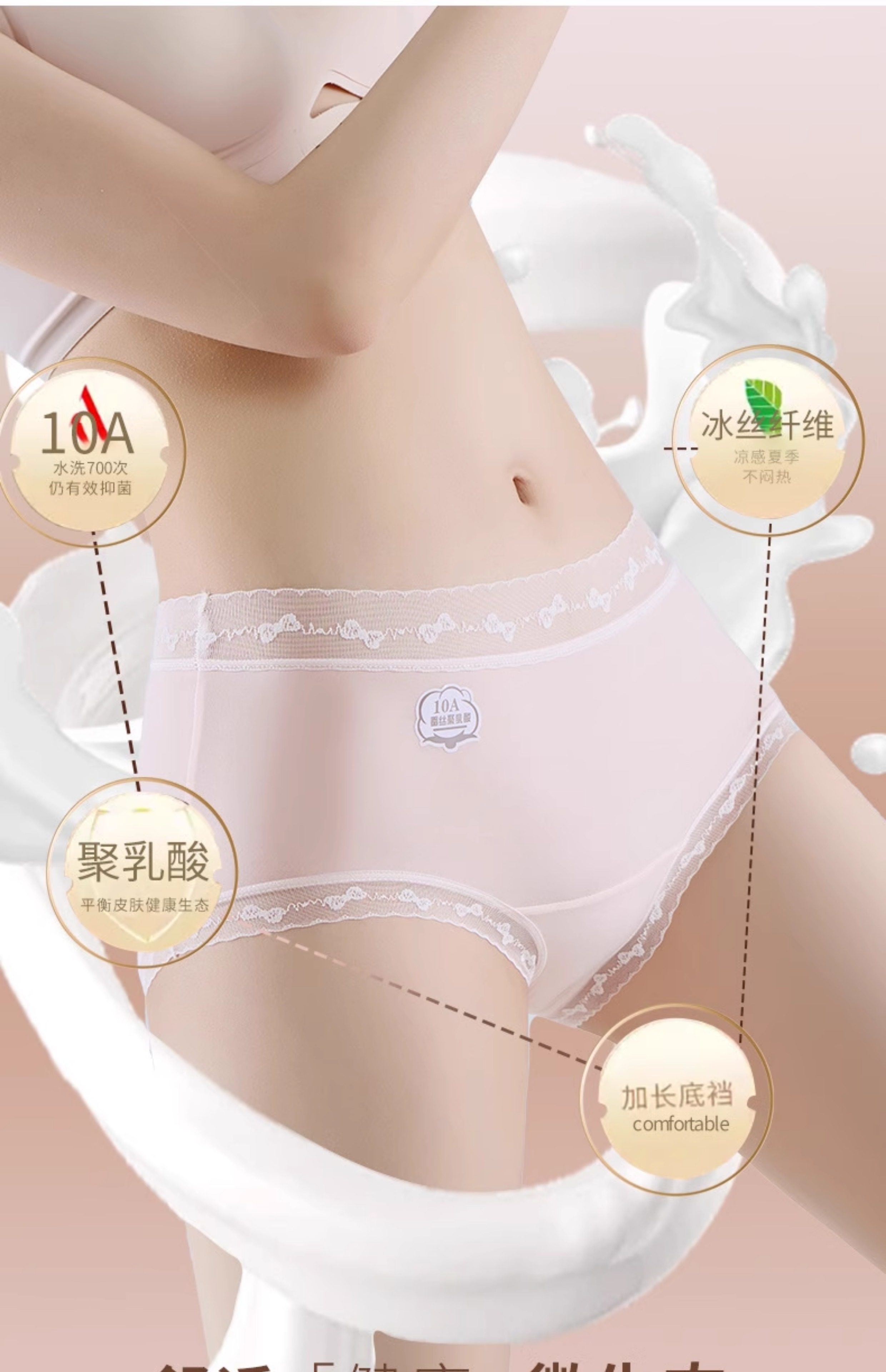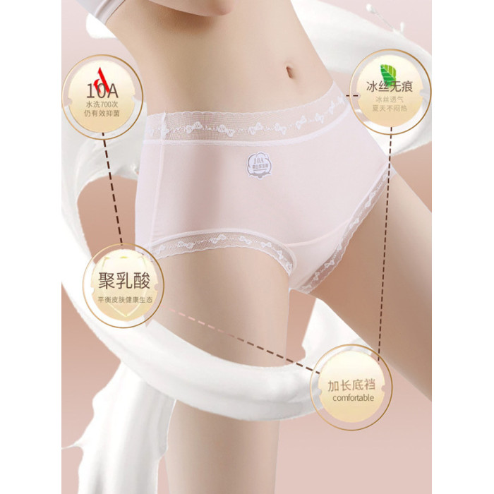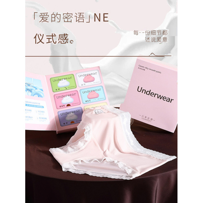 6條盒裝嬭油冰膜褲高彈冰絲透氣包臀10A聚乳酸抗菌加長襠三角內褲