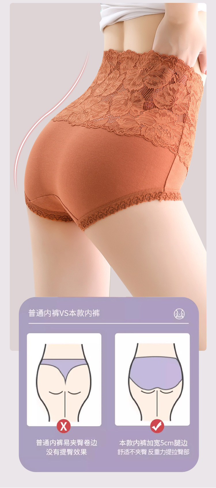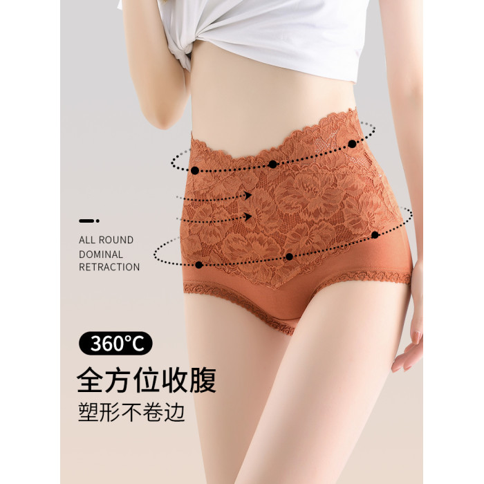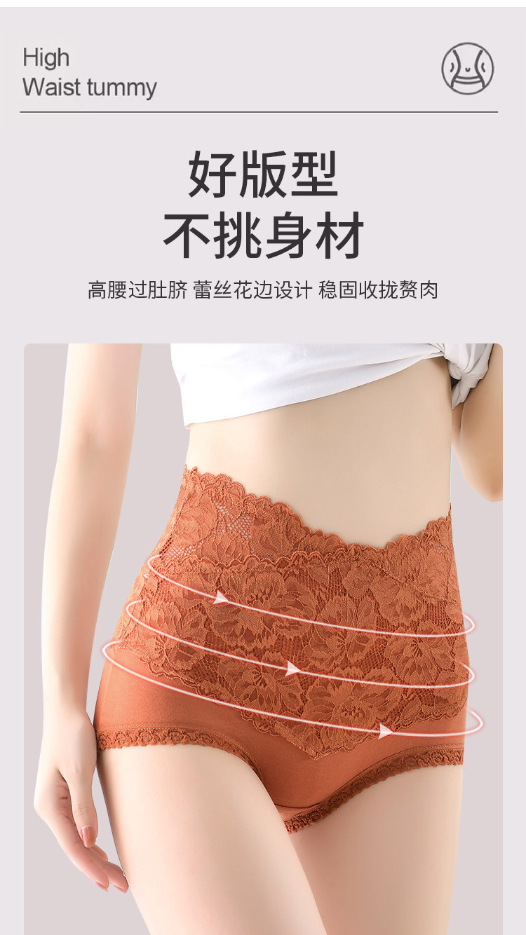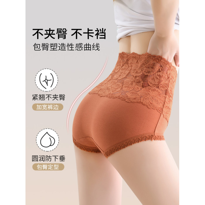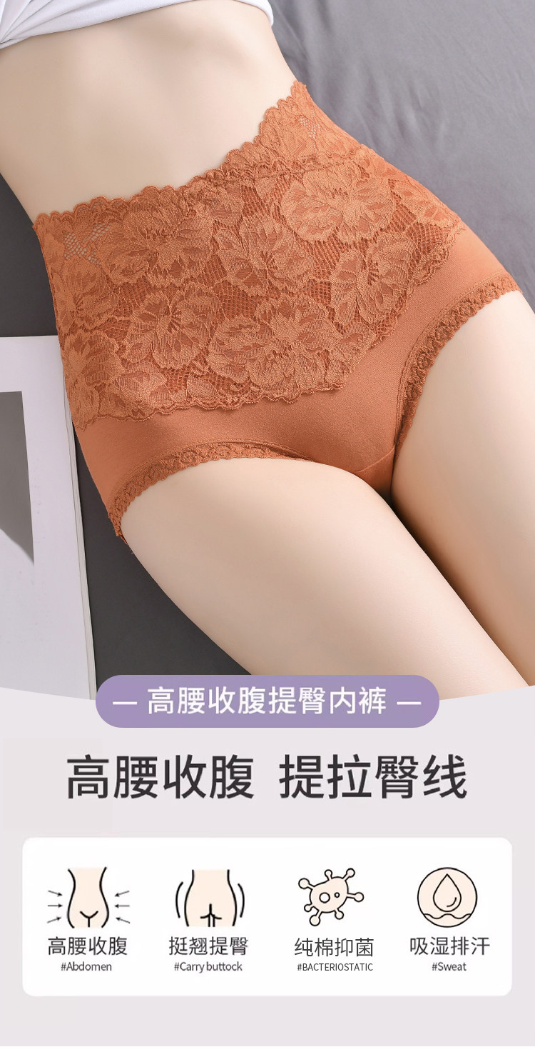 高腰收腹內褲女純棉抗菌收小肚子提臀性感蕾絲大碼新款胖mm短褲頭