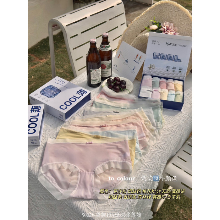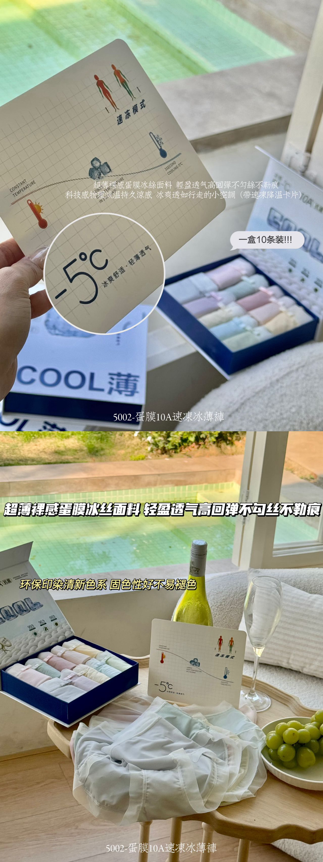 5002#蛋膜10A透氣冰感速凍冰薄褲乳酸抗菌內褲少女士裸感無痕高彈