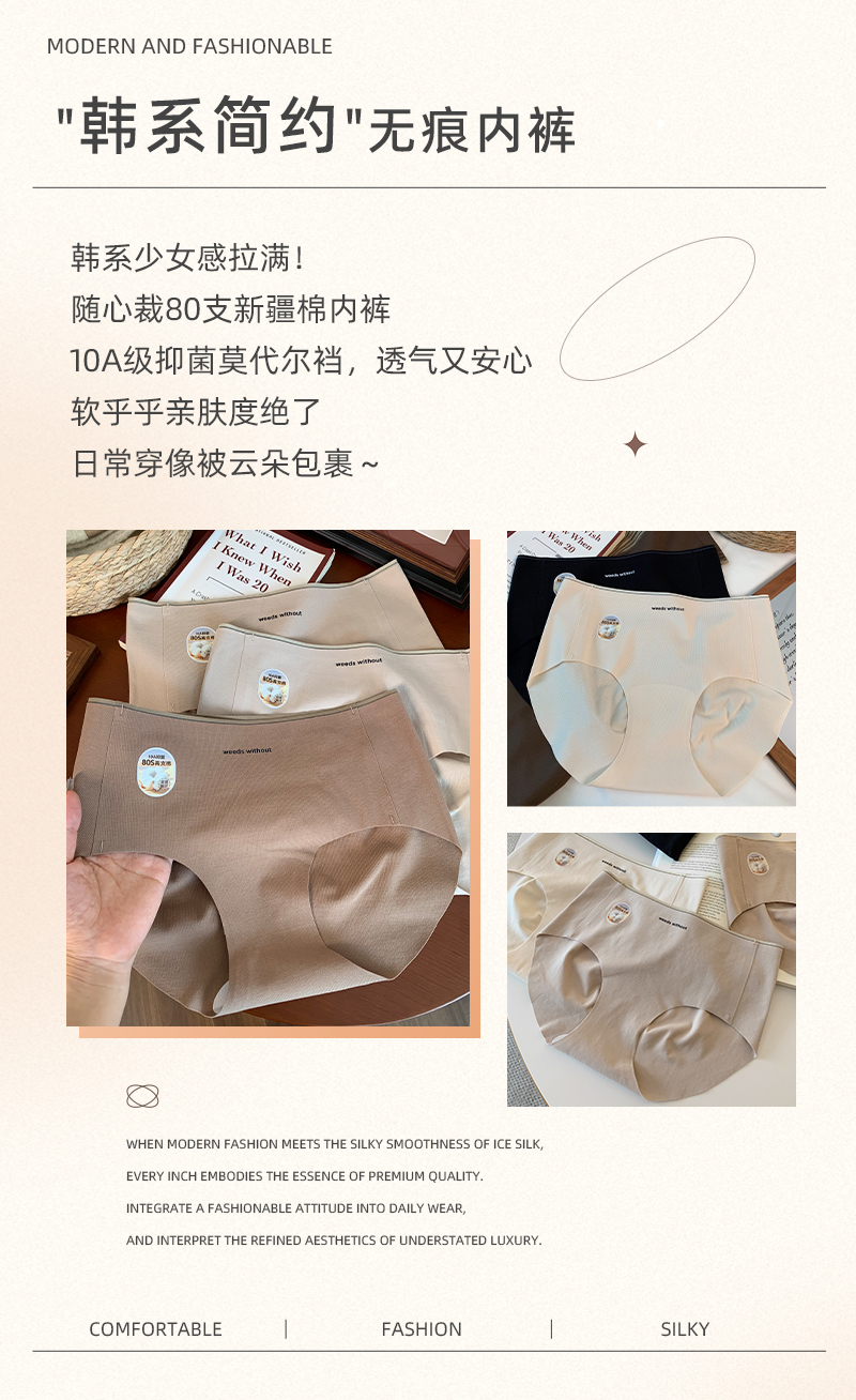 陷入棉花~10A抑菌內褲女士莫代爾襠部中腰無痕親膚舒適女生三角褲