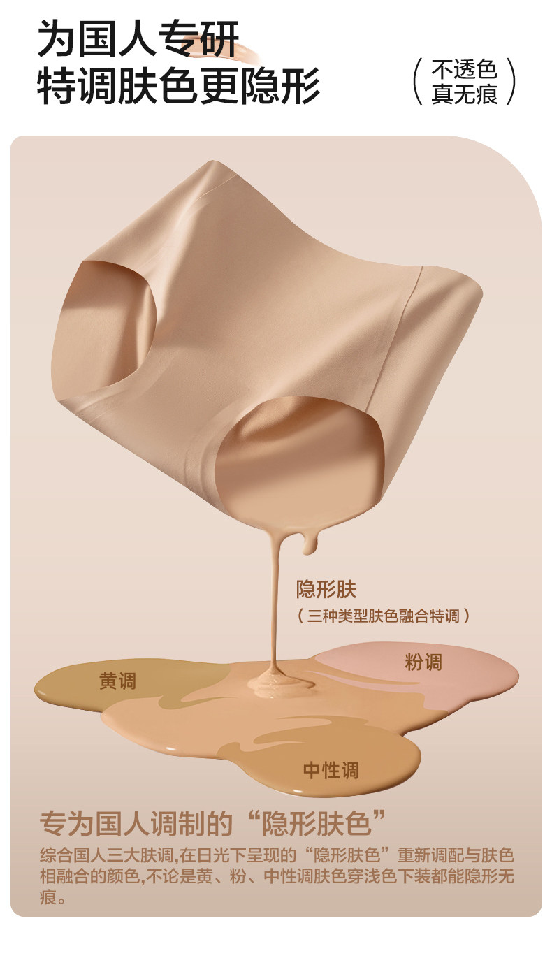 貓人粉底液隱形無痕冰絲內褲女2025新款益生菌襠透氣不夾臀三角褲