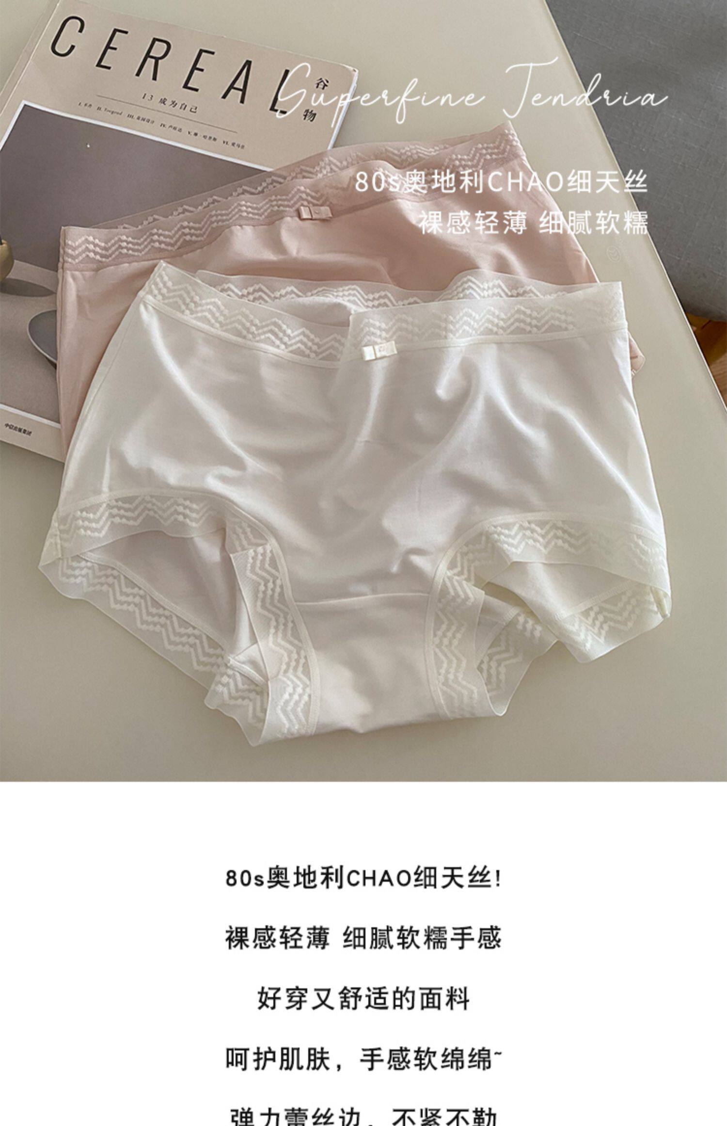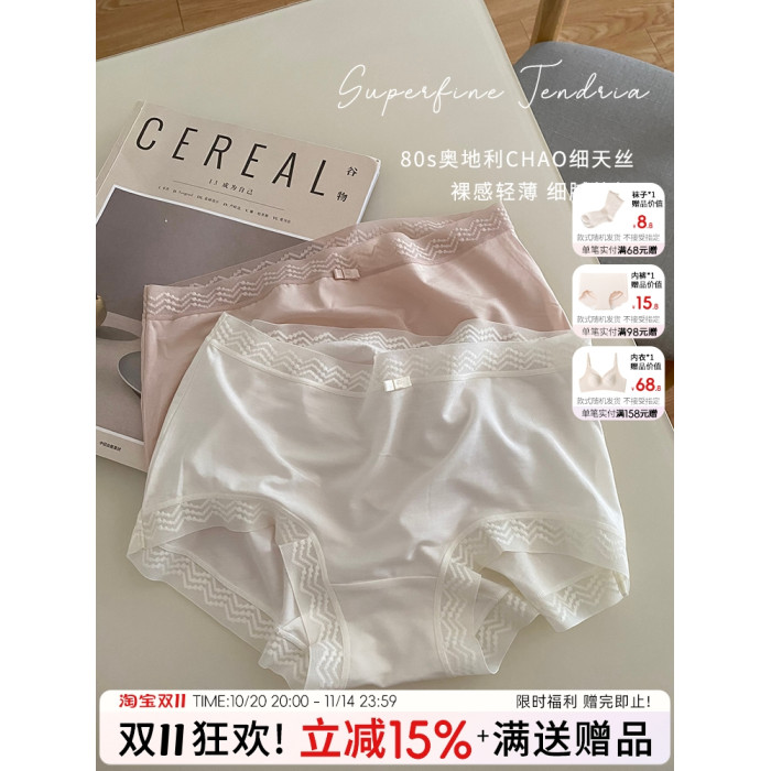 浮生若夢80支超細天絲少女內褲柔軟蕾絲邊舒適高彈中高腰包臀三角