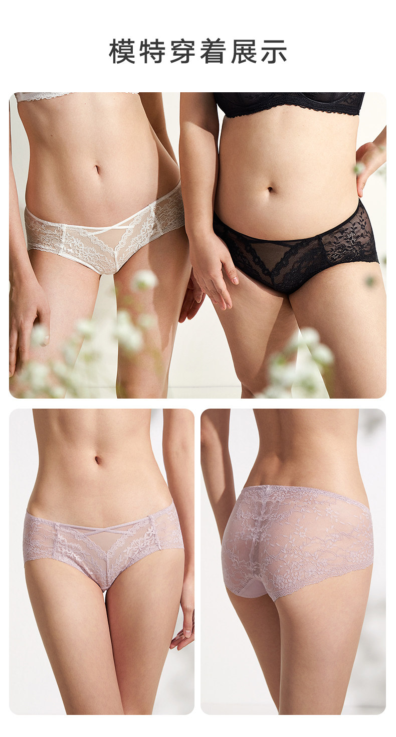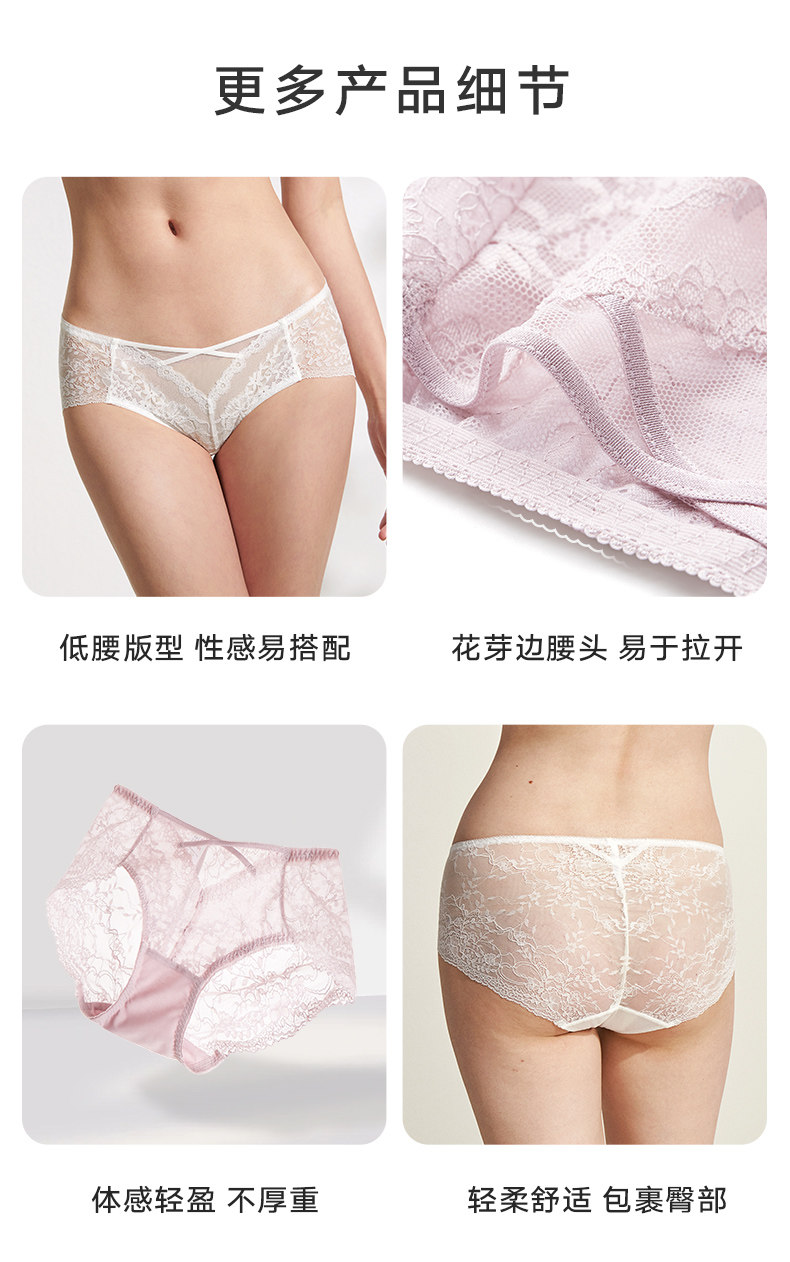 曼妮芬舒適中低腰性感蕾絲內褲女輕薄紅色本命年純棉底襠女生短褲