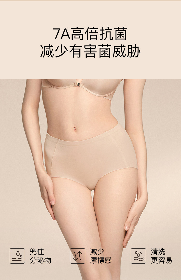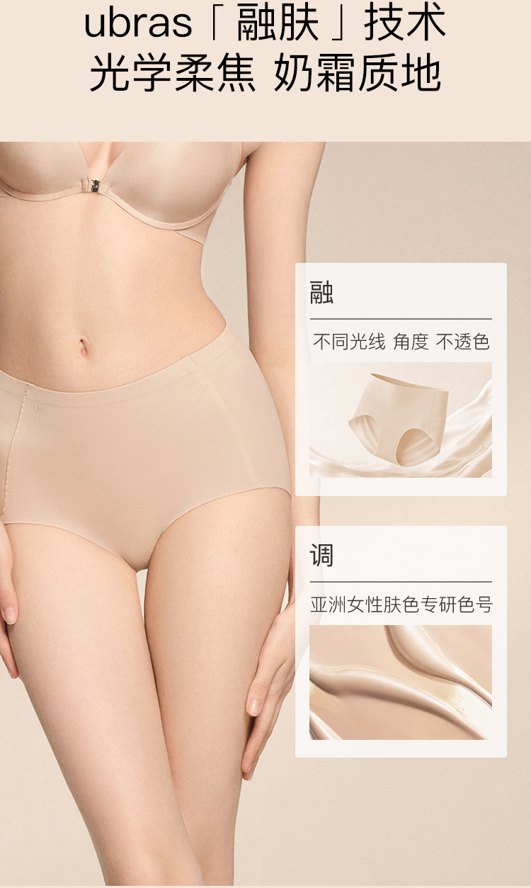 ubras中高腰粉底液無痕隱形內褲女薄款純棉抗菌襠大碼膚色三角褲