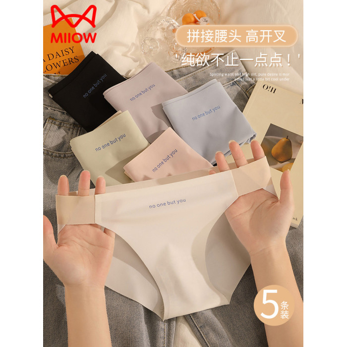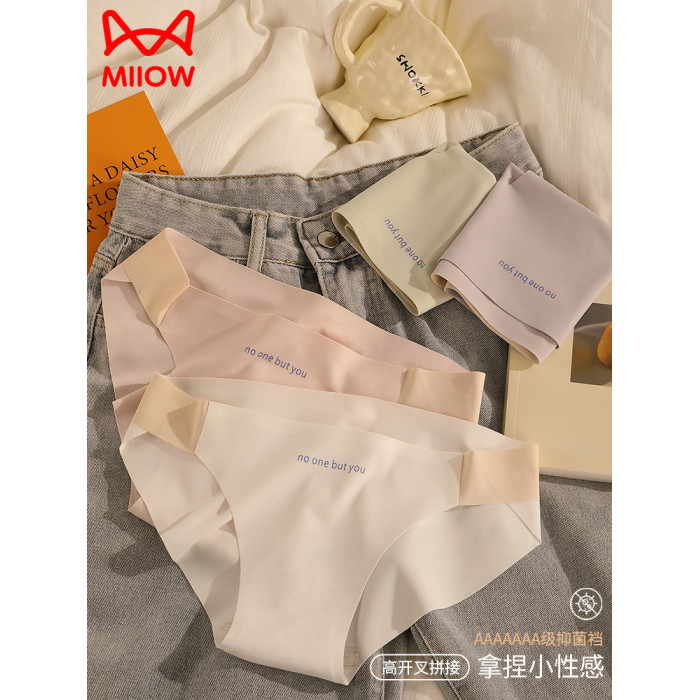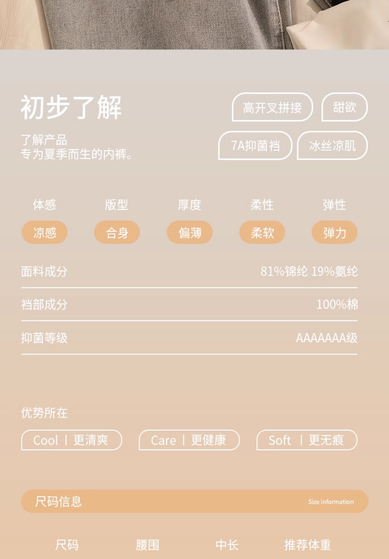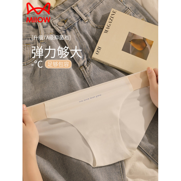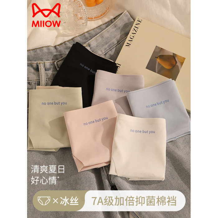 貓人無痕冰絲內褲女性感不夾臀夏季新款純棉抗菌襠高開叉性感短褲