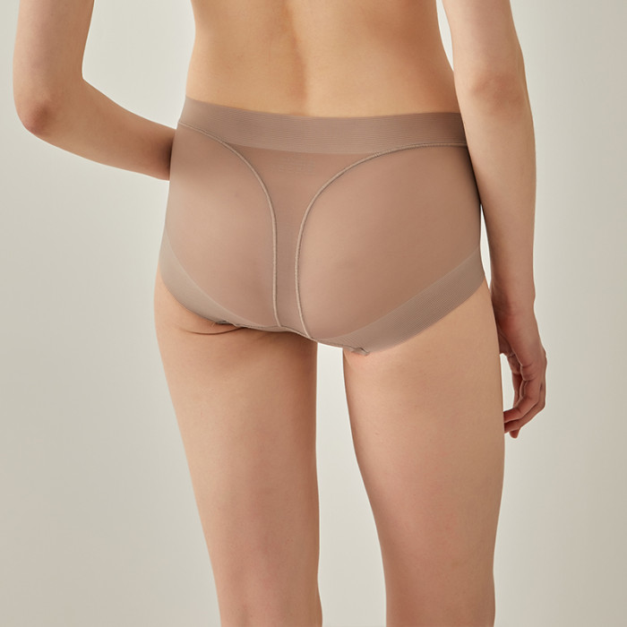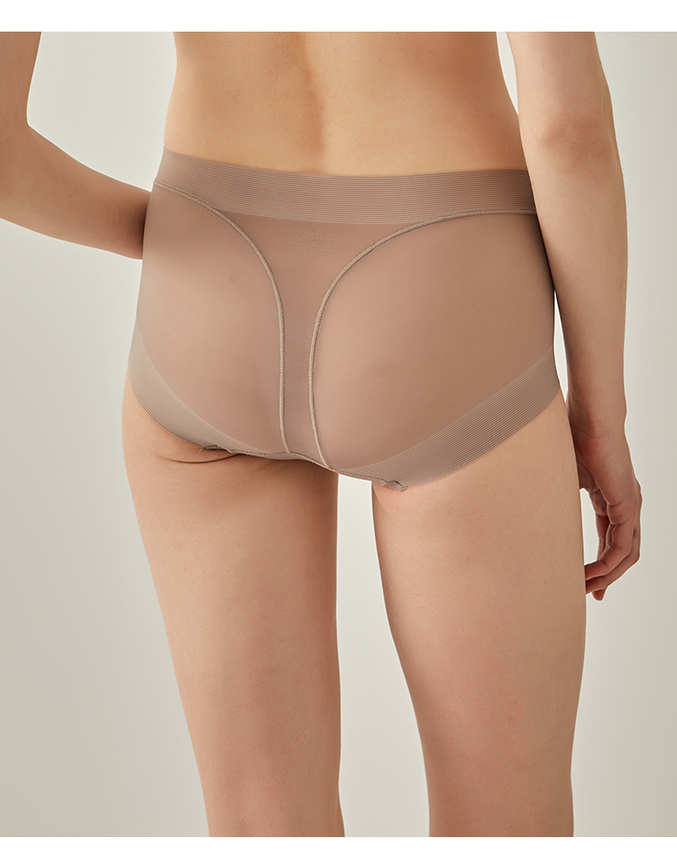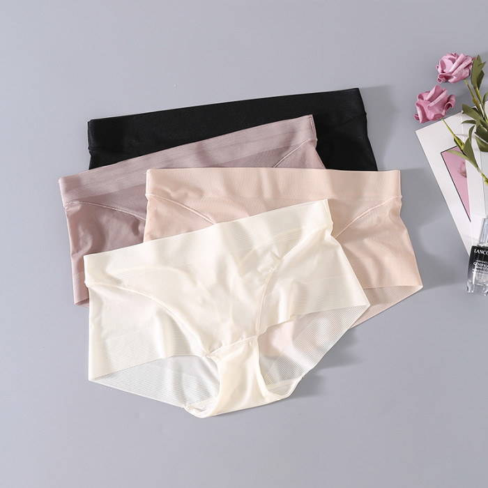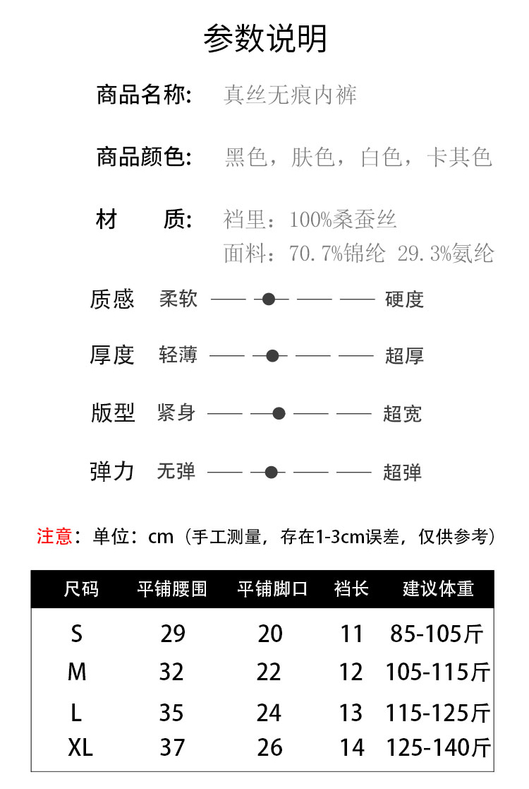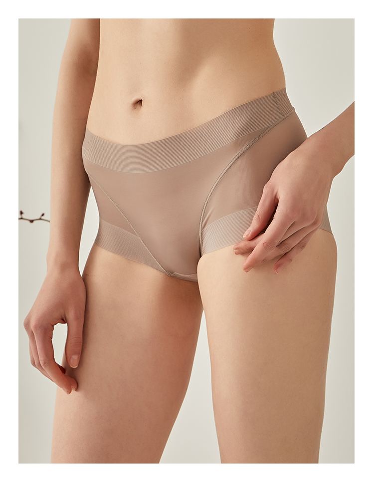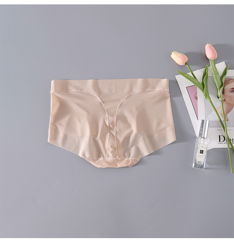 無痕包臀真絲內褲 桑蠶絲襠部舒適平角褲 中腰透氣收腹提臀三角褲