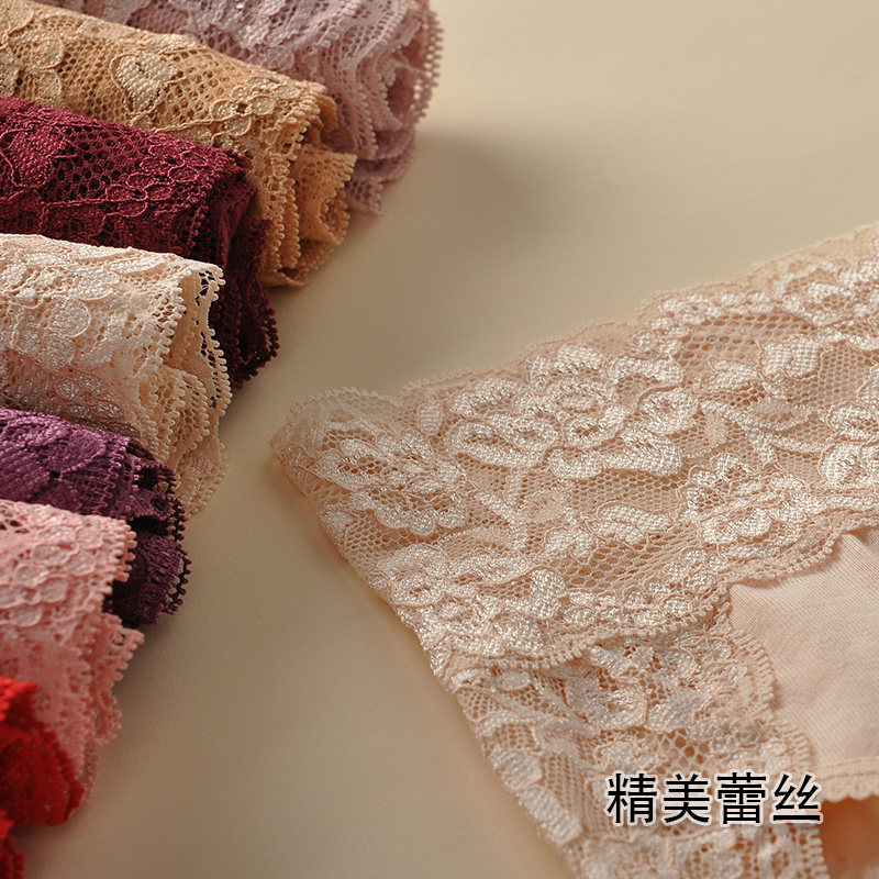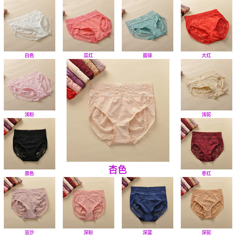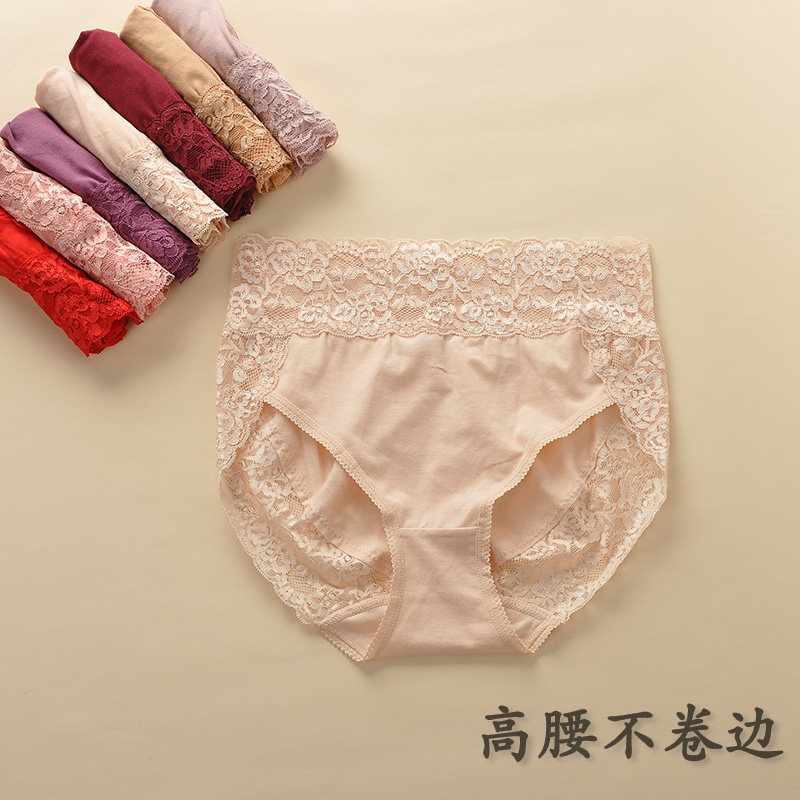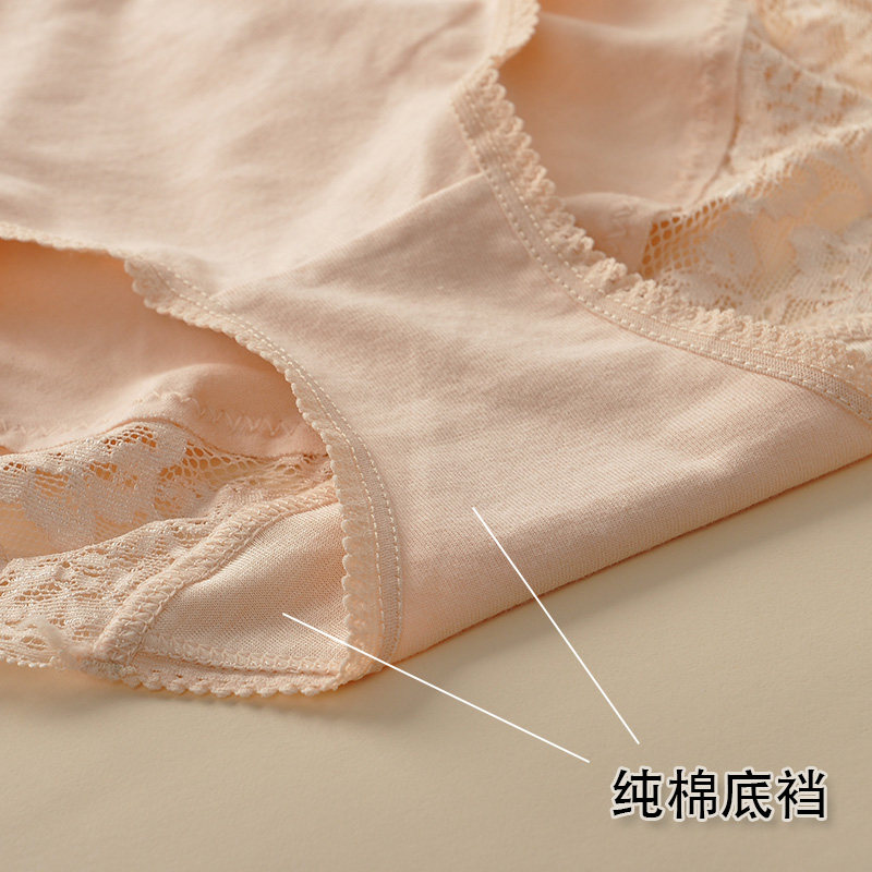 4條裝升級款性感無痕內褲女純棉高腰蕾絲邊大碼全棉襠三角褲