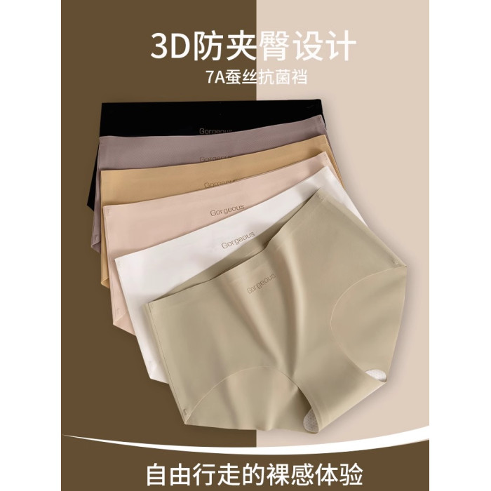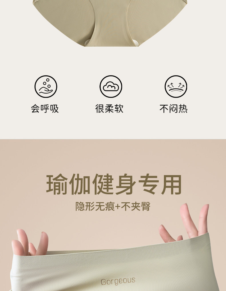 夏季薄款瑜珈健身無痕內褲女7A桑蠶絲抗菌襠不夾臀女生中腰三角褲