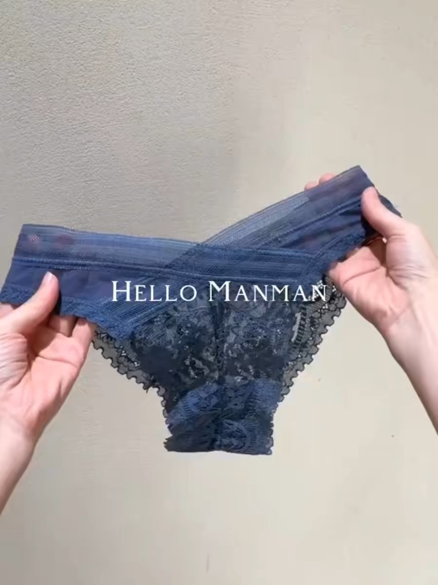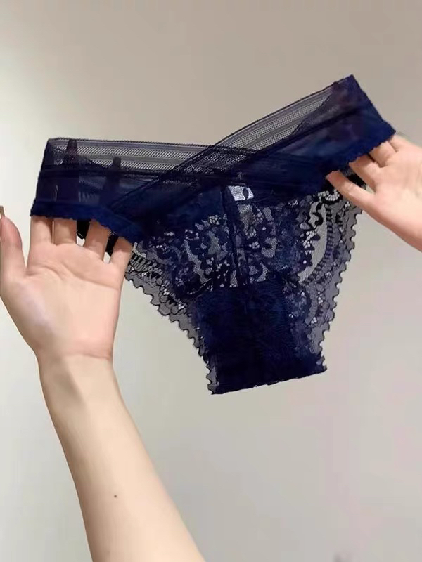 寶石藍色好高級娬媚!交叉V形蕾絲女士內褲~法式純欲~逐漸淪陷了~