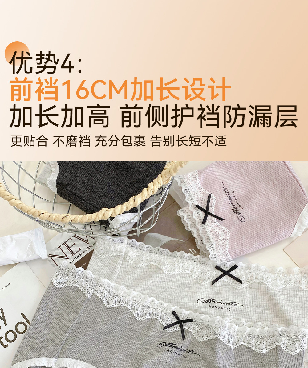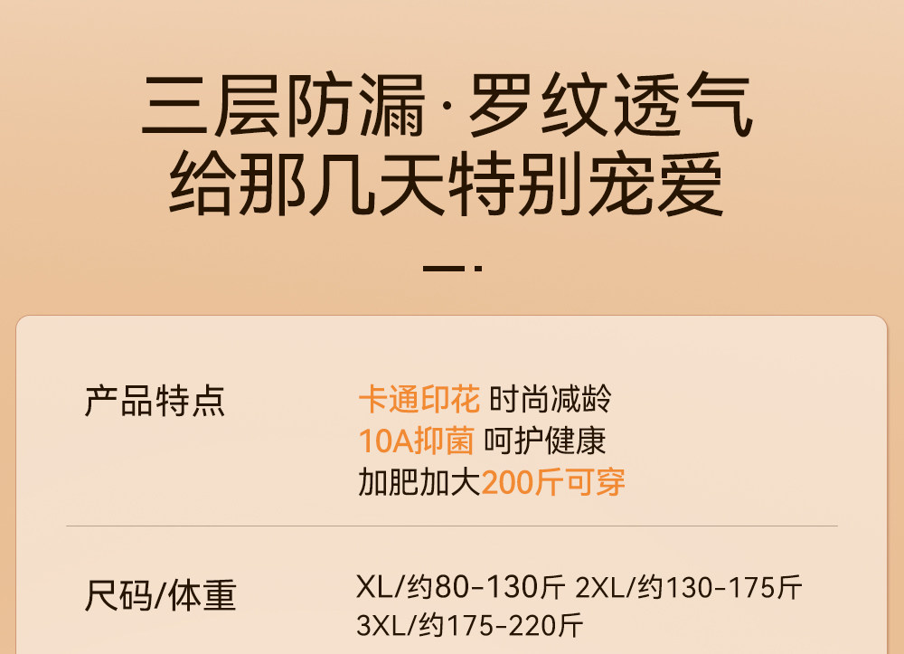 微內薇大碼生理內褲女三層防側漏10A抑菌純棉加長襠月經期姨媽褲